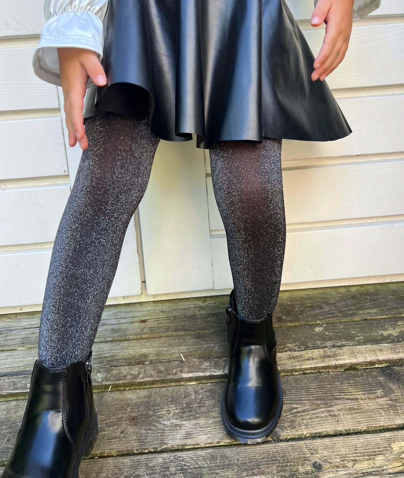 Kinder panty - Zwart/Glitter Zilver