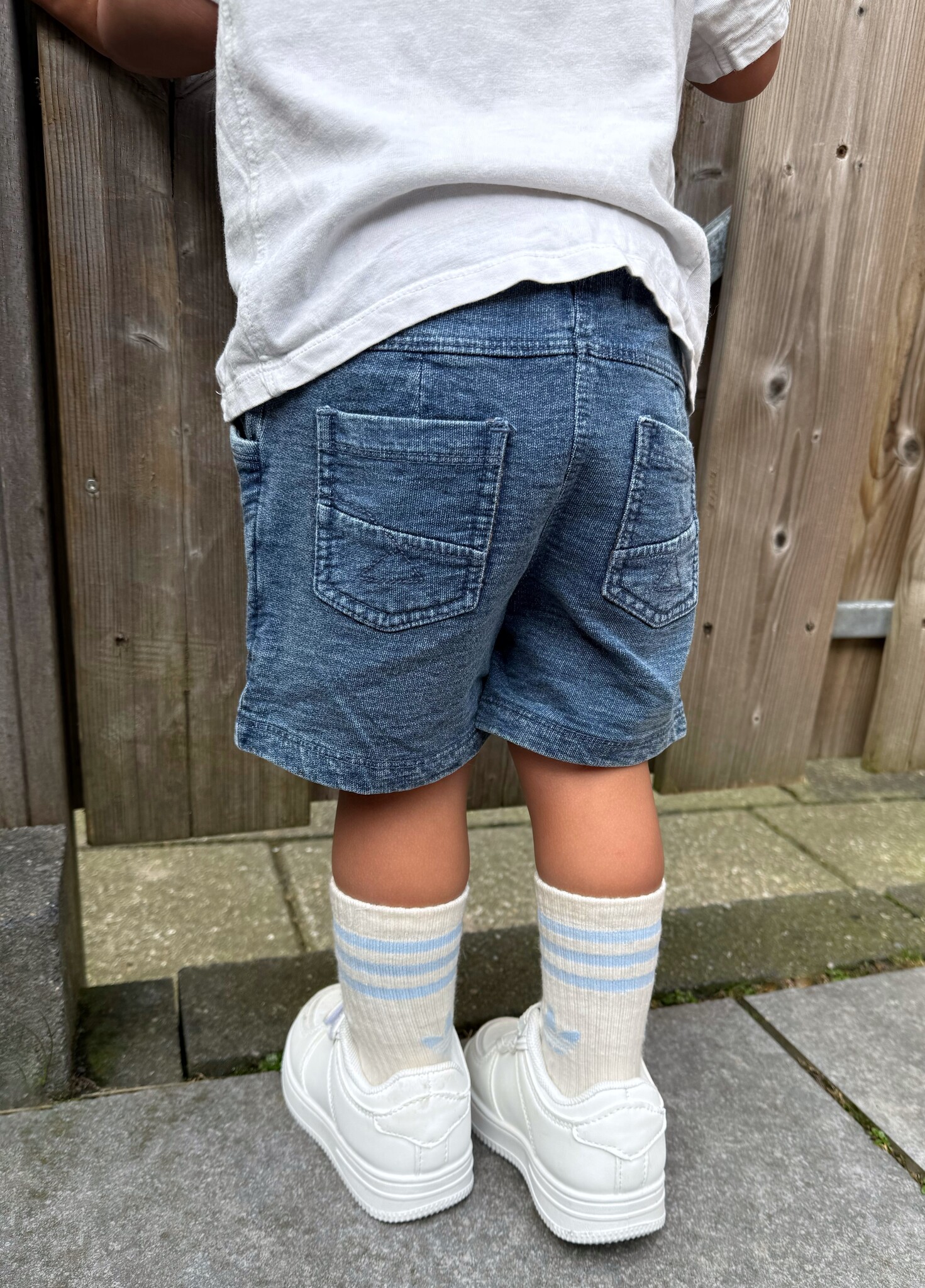Wat schattig! Dit lieve, maar ook stoere korte denimlook joggingbroekje van het merk Dirkje shop je nu online bij Draakjes en Boefjes!