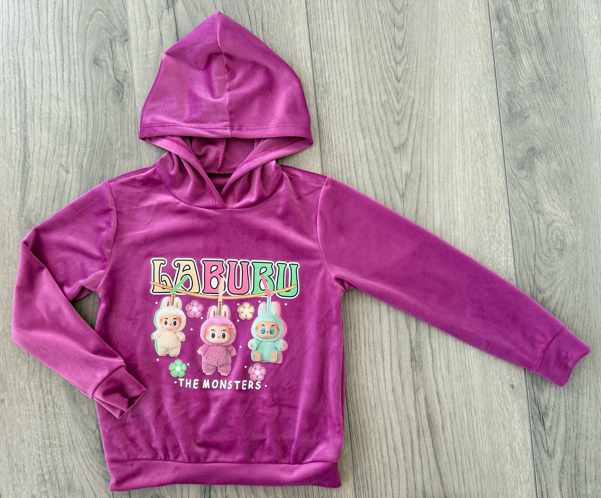 De bordeaux rode Labubu velours trui is gemaakt voor meisjes die houden van kleur, zachtheid en schattige details. De kleurrijke Labubu figuurtjes op de hoodie geven de outfit een speelse en vrolijke uitstraling!