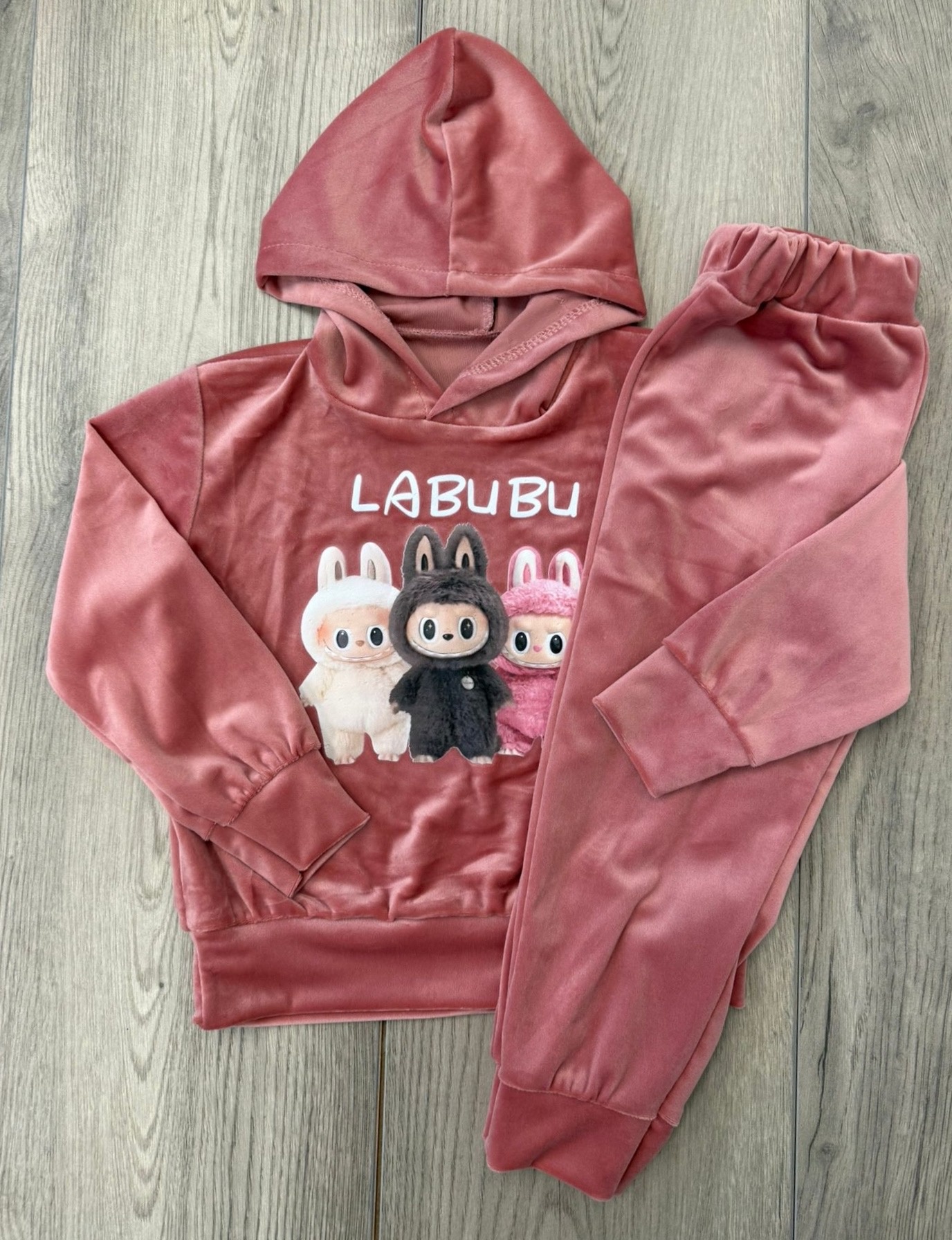 Dit oudroze Labubu velours setje is een musthave voor meisjes die houden van comfy, schattig en stijlvol. De 2-delige set bestaat uit een hoodie met capuchon en een bijpassende joggingbroek. De fluweelzachte velours stof maakt het extra comfortabel, perfect voor school, thuis of onderweg.