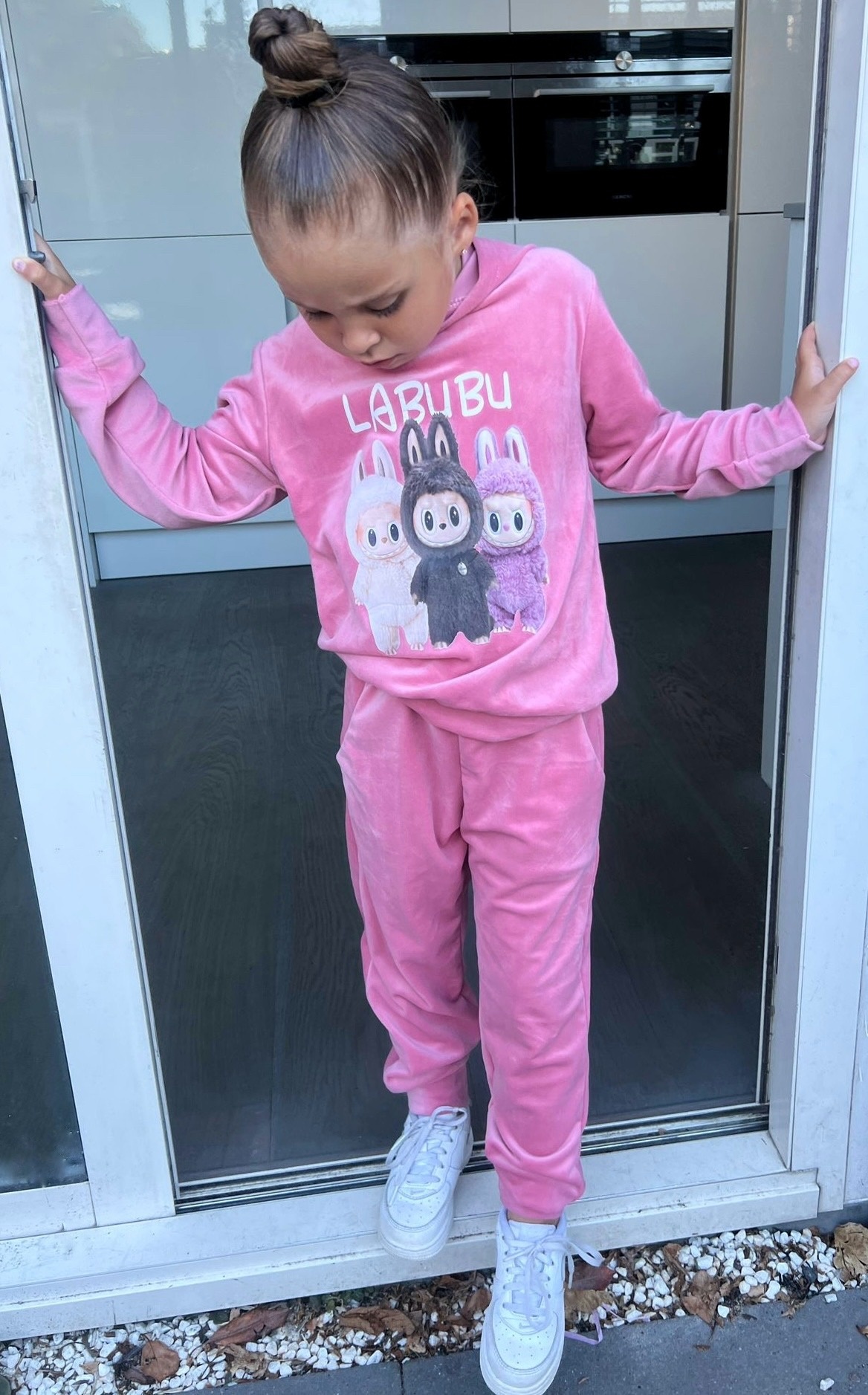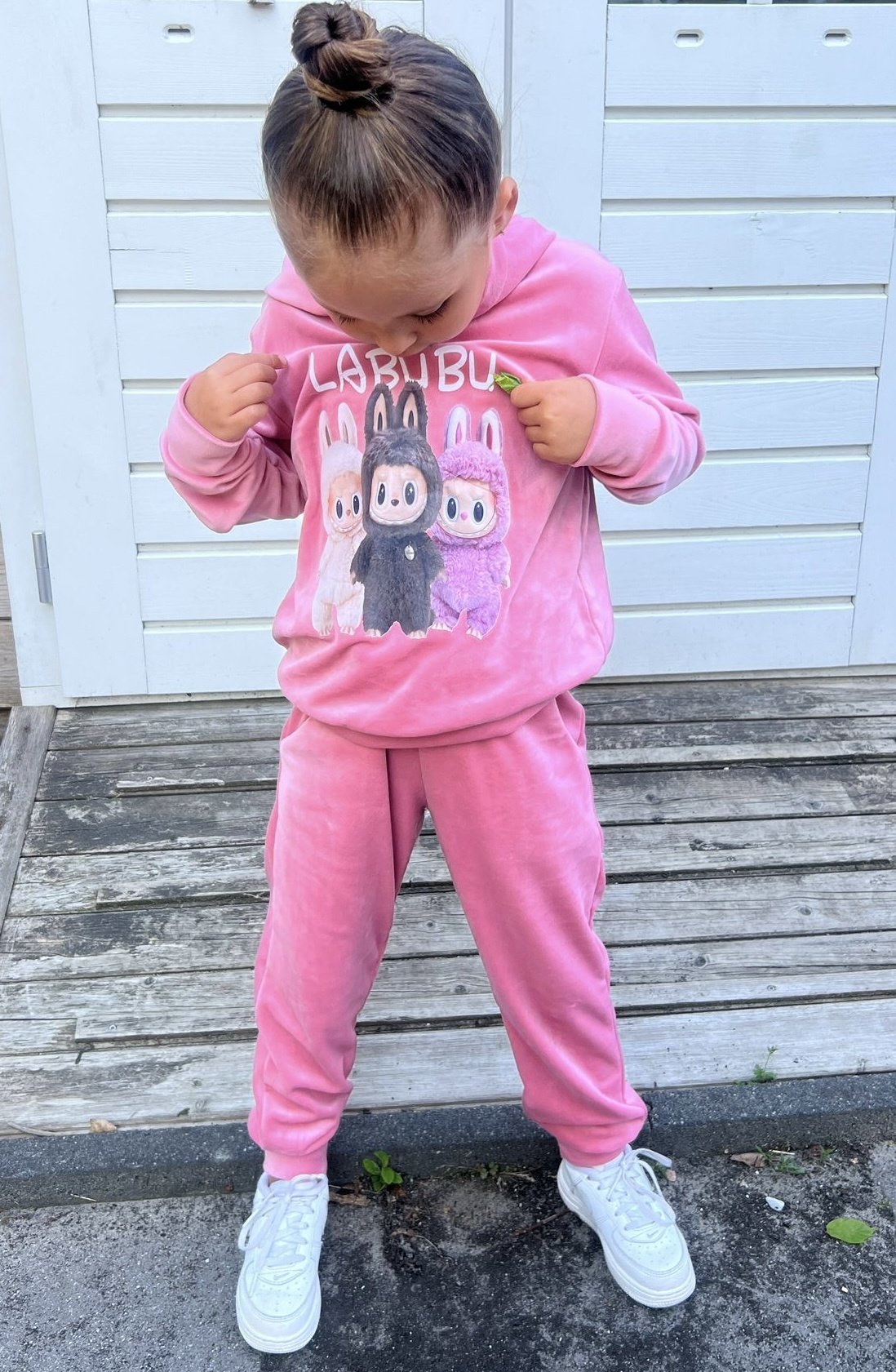 Dit oudroze Labubu velours setje is een musthave voor meisjes die houden van comfy, schattig en stijlvol. De 2-delige set bestaat uit een hoodie met capuchon en een bijpassende joggingbroek. De fluweelzachte velours stof maakt het extra comfortabel, perfect voor school, thuis of onderweg.
