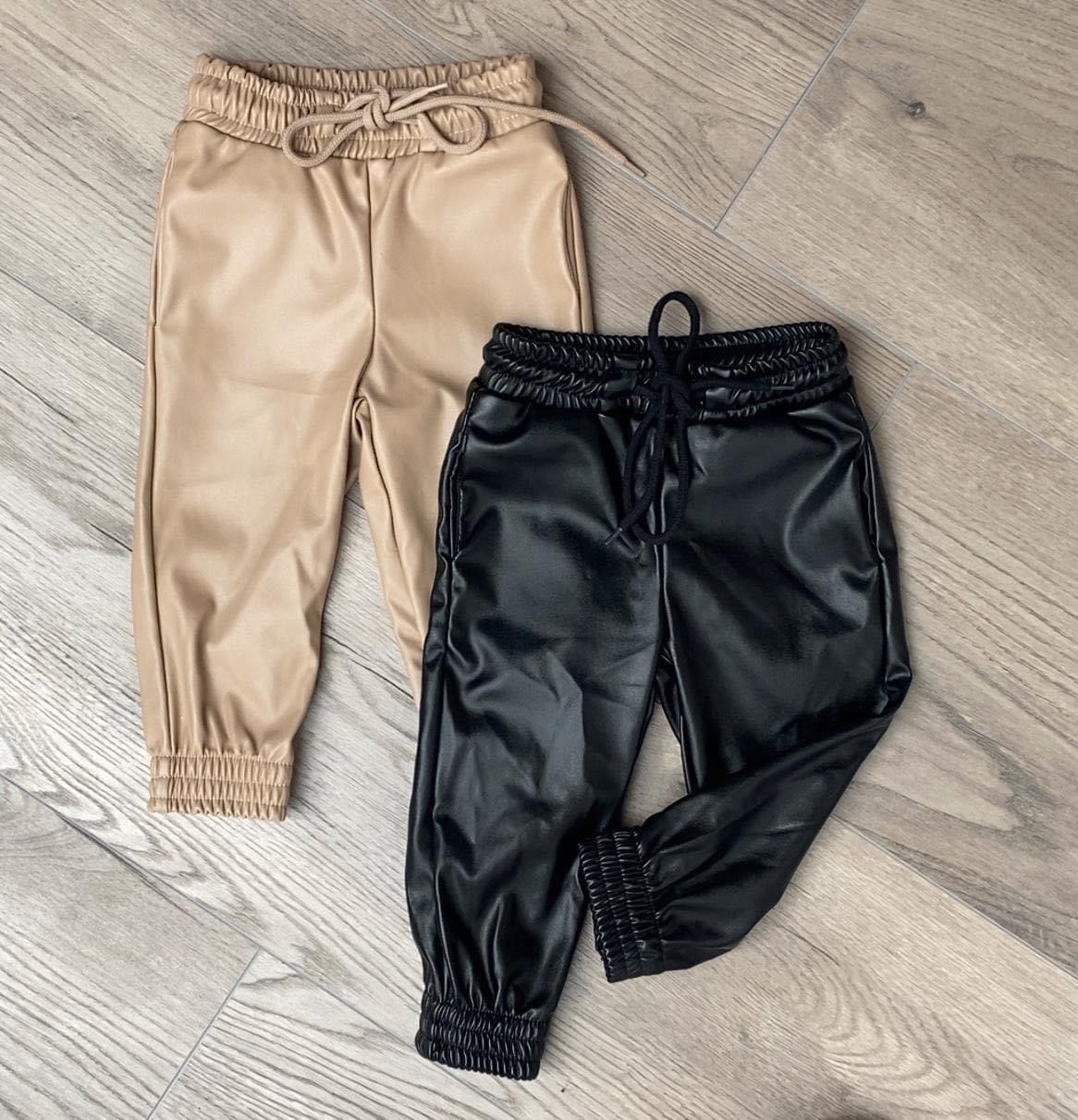 Een super toffe leatherlook broek voor kinderen in de kleur zwart