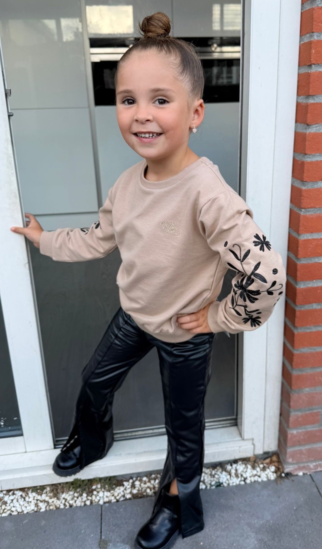 Trendy leatherlook flared broek van No Way Monday met split aan de voorkant. Perfect voor een stoere meisjeslook. Op werkdagen voor 15:00 besteld, morgen in huis!