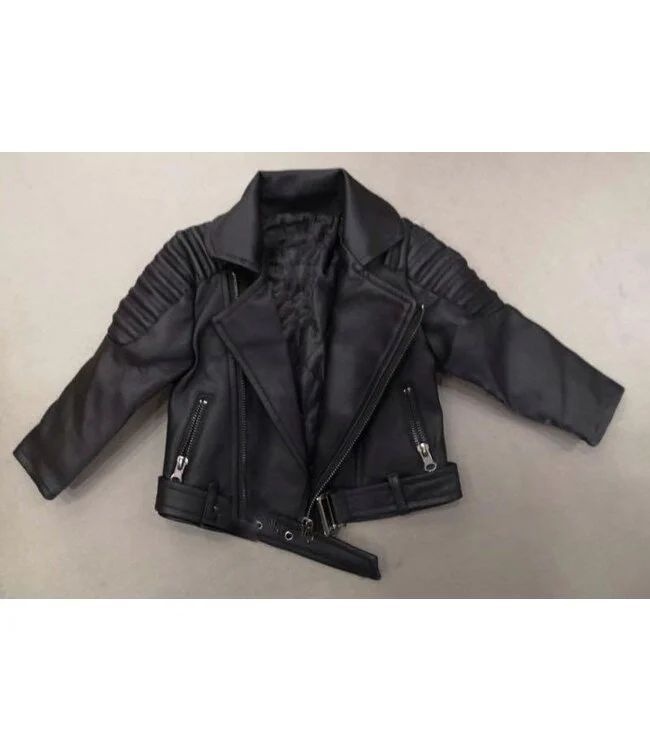 Geef elke outfit van je kind een stoere upgrade met deze zwarte bikerjas. Dit tijdloze model is gemaakt van hoogwaardig, soepel imitatieleer en voorzien van zilverkleurige ritsen, drukknopen en een verstelbare ceintuur. De voering zorgt voor extra draagcomfort, terwijl het bikerdesign een trendy, stoere uitstraling geeft. Perfect voor het voor- en najaar, maar ook stijlvol genoeg voor frisse zomerdagen of milde winterdagen.