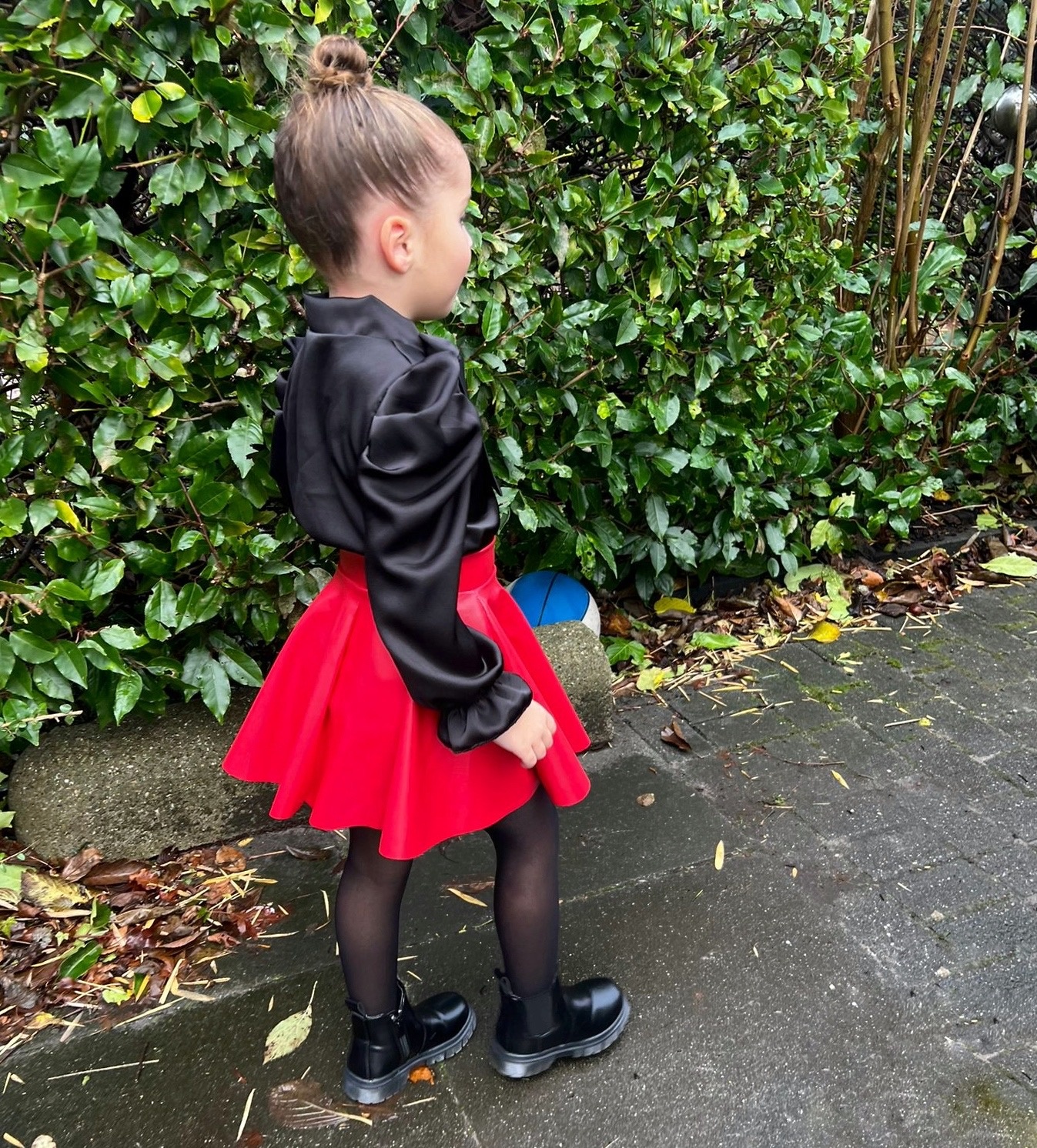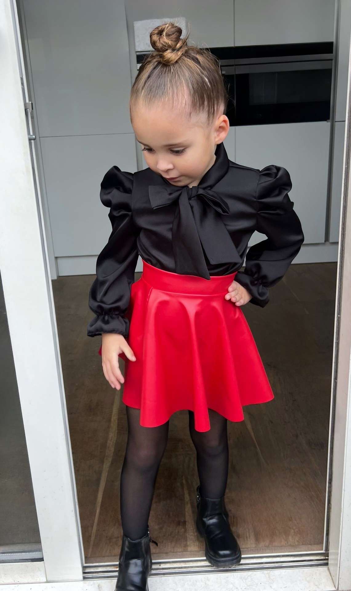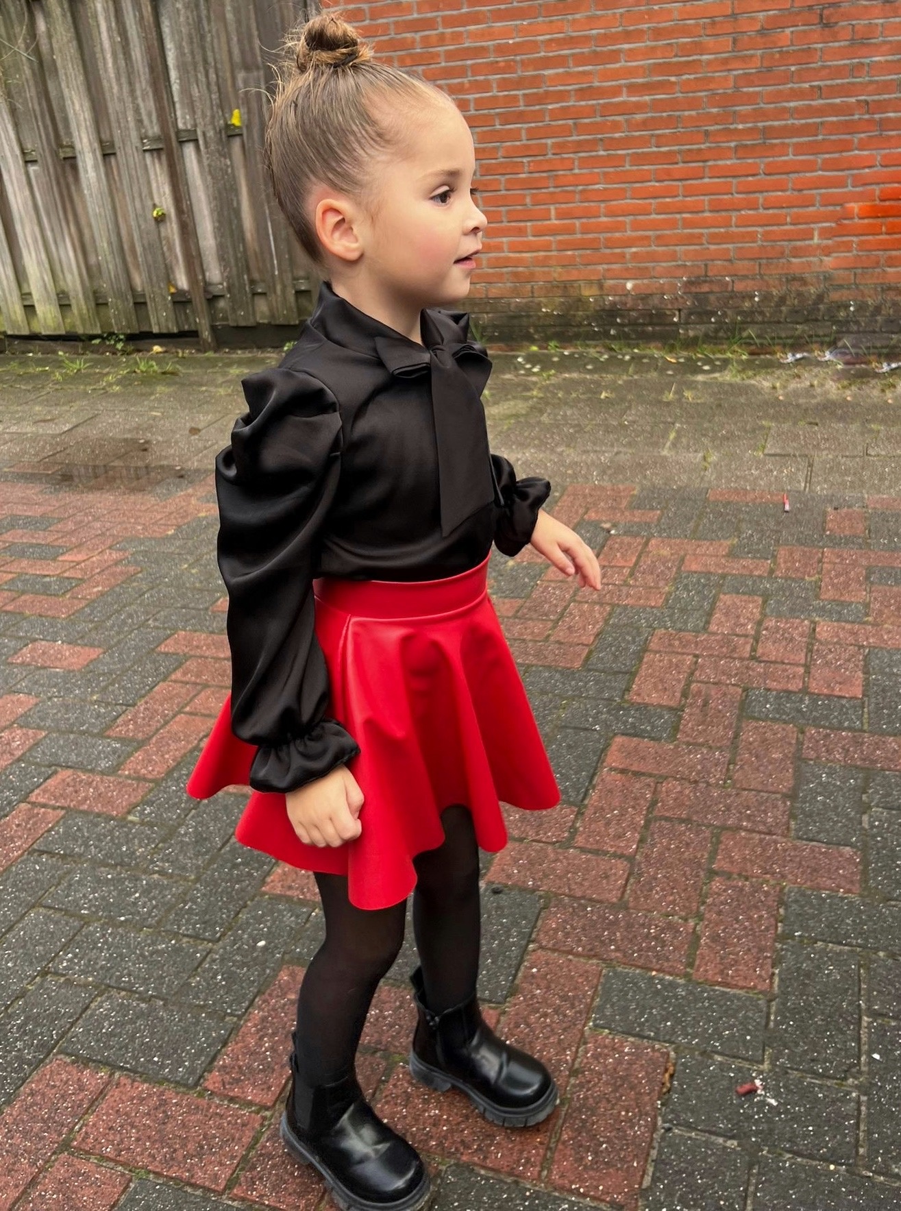 Een een geweldig nep leren rokje voor kinderen welke super te combineren is met onze ruffle shirtjes.