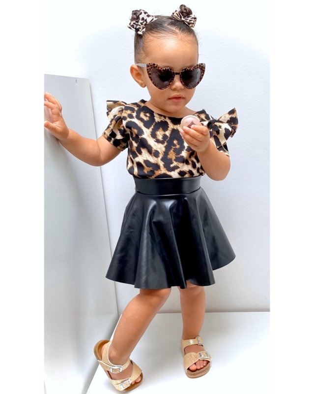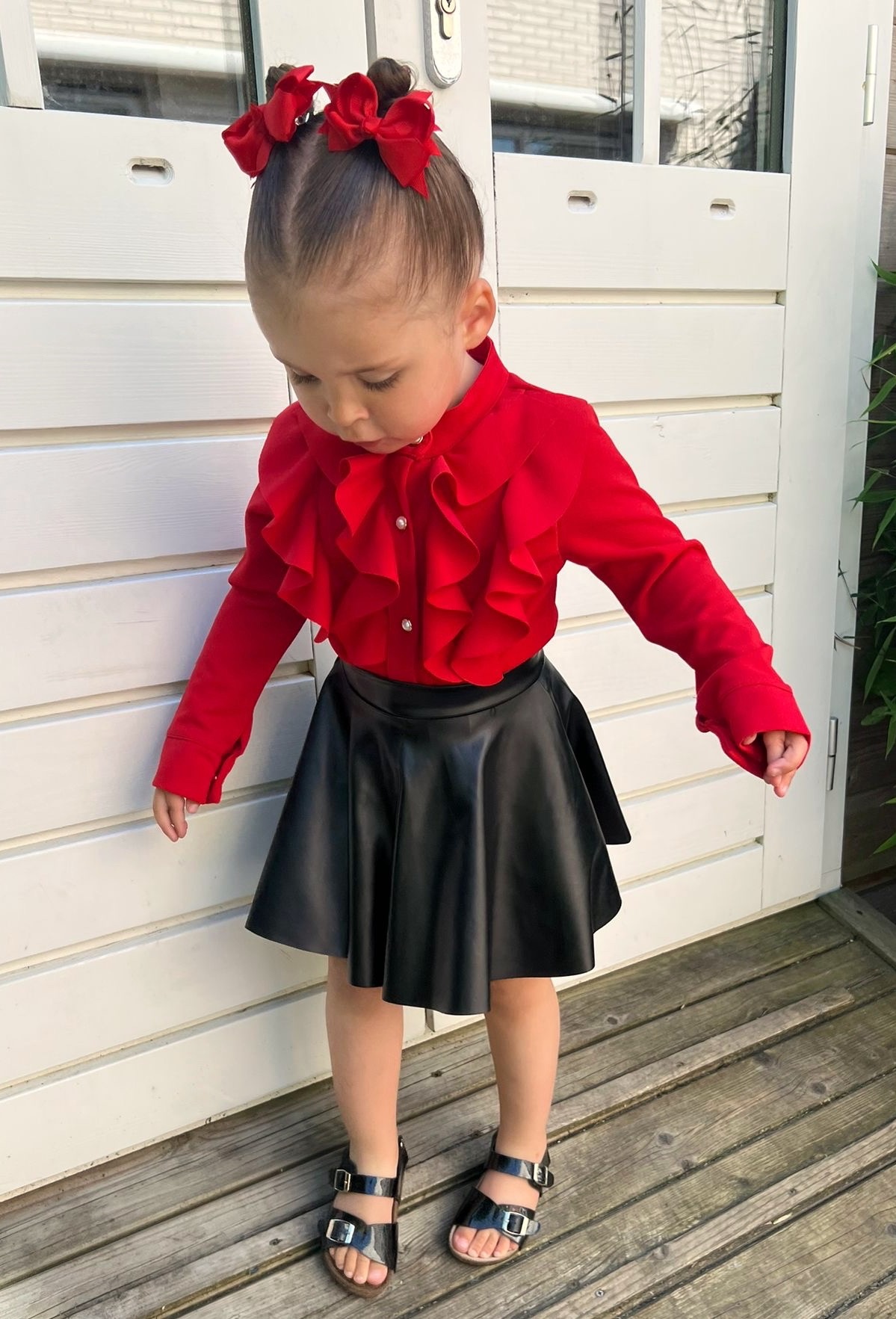 Een een geweldig nep leren rokje voor kinderen welke super te combineren is met onze ruffle shirtjes.