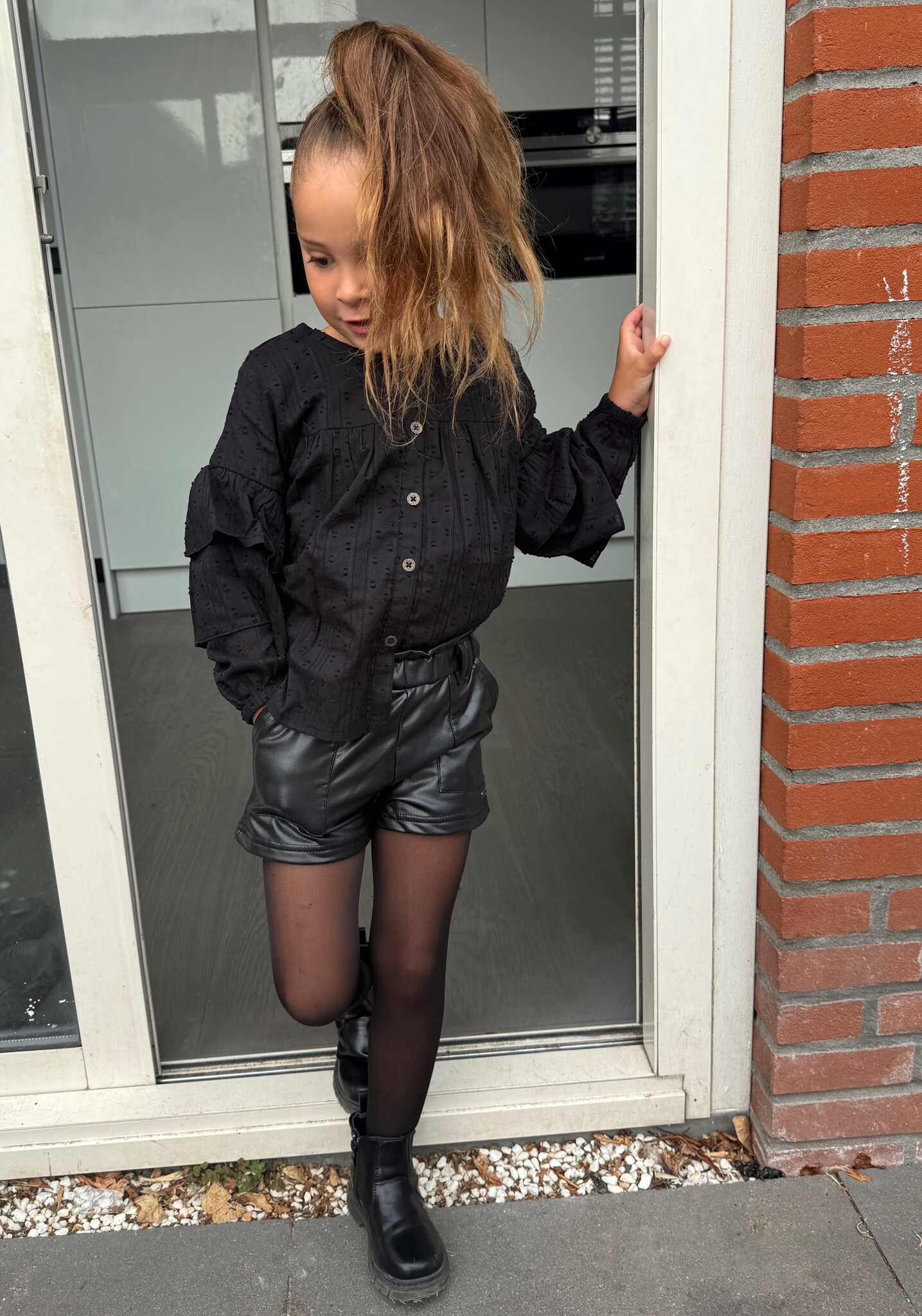 Trendy zwarte leatherlook short van No Way Monday. Comfortabel en stijlvol voor hippe meiden. Verkrijgbaar in maat 92 t/m 140. Perfect voor een stoere, fashionable look!