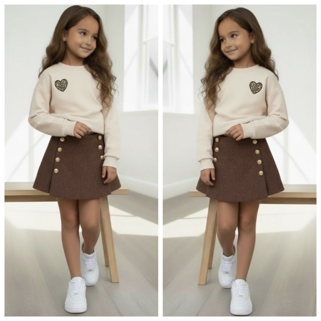 Deze stijlvolle 2-delige meisjes set bestaat uit een trendy skort en een bijpassende sweater. De perfecte combinatie van comfortabel en chic, geschikt voor zowel dagelijkse outfits als speciale momenten.