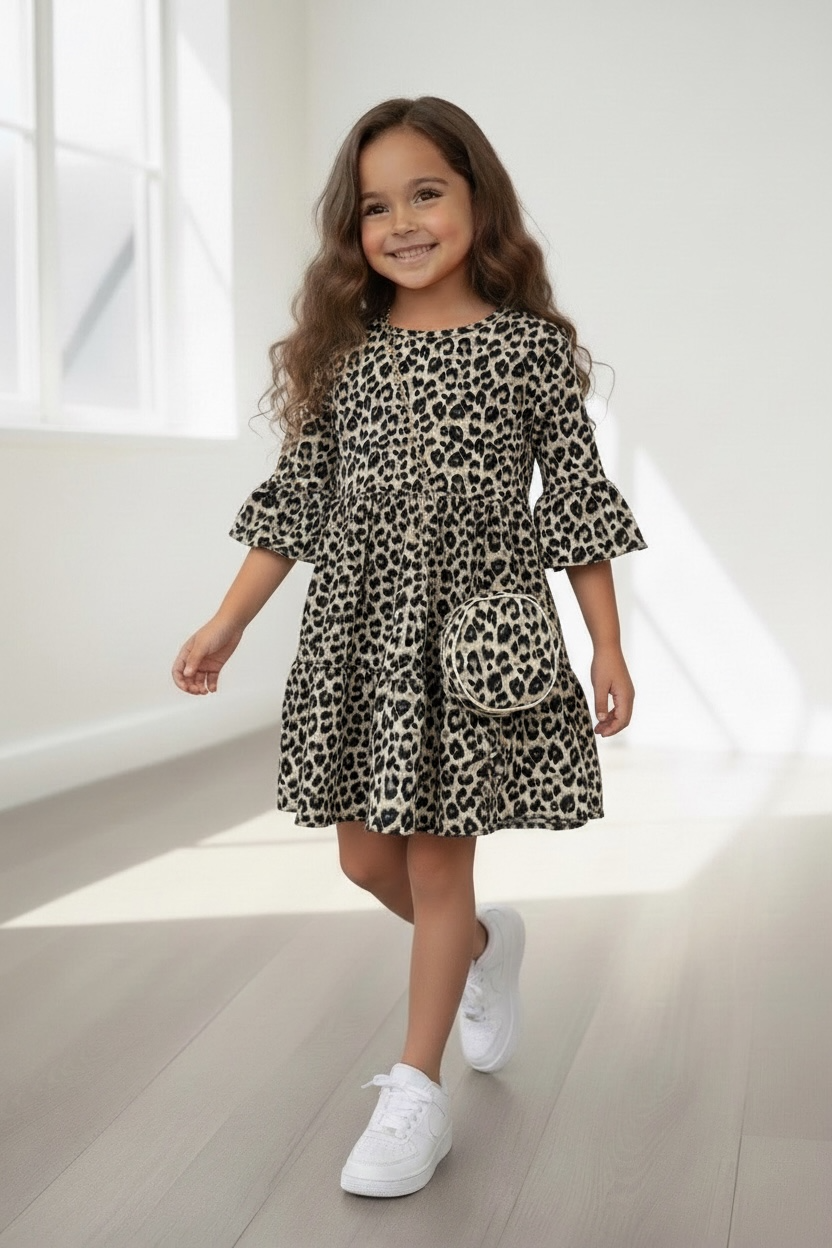 Leopard Jurk met tasje - Choco