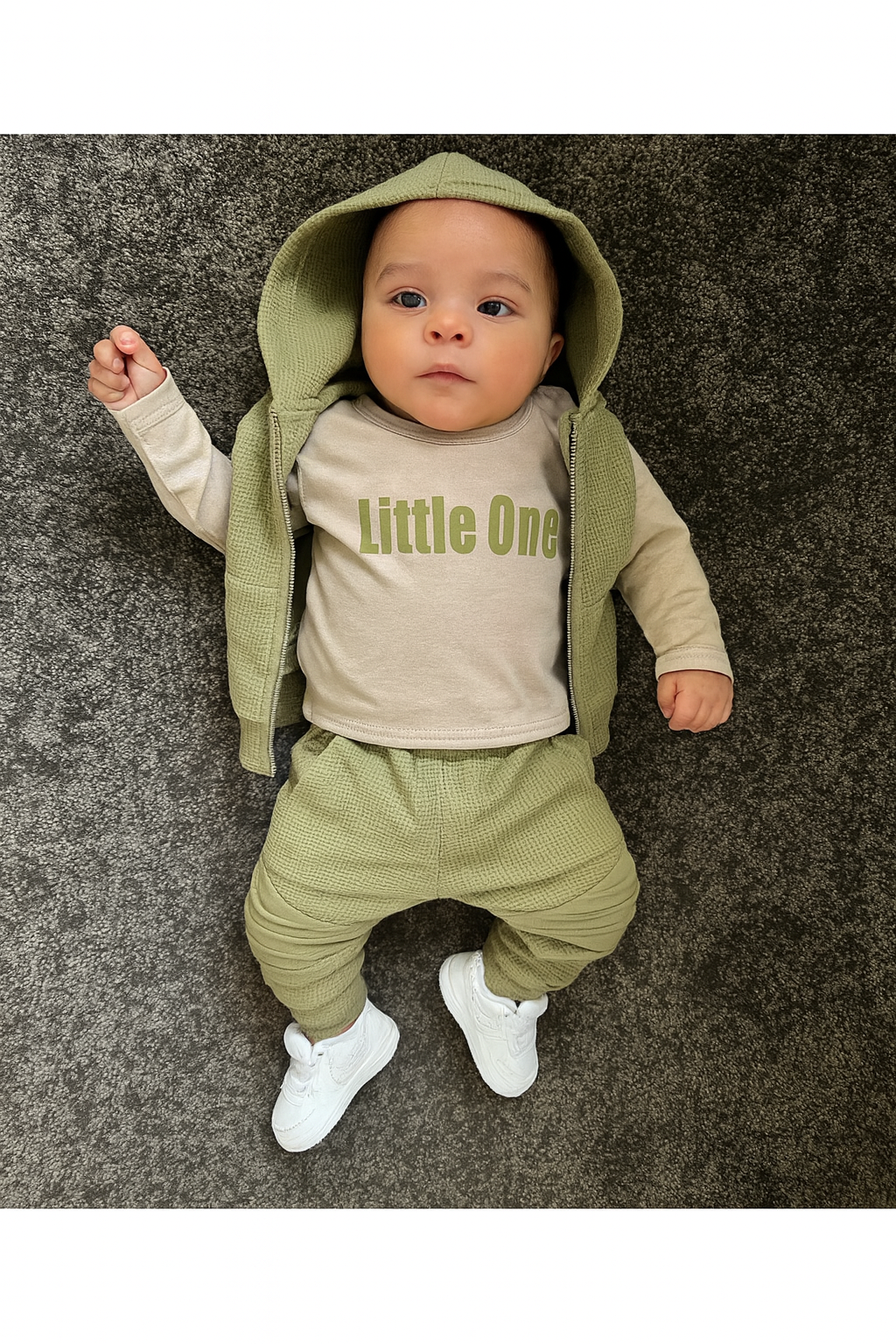 Dit khaki baby- en peutersetje is een stijlvolle en comfortabele keuze voor jouw kleintje. De set bestaat uit een zachte bodywarmer met longsleeve en een bijpassende joggingbroek.