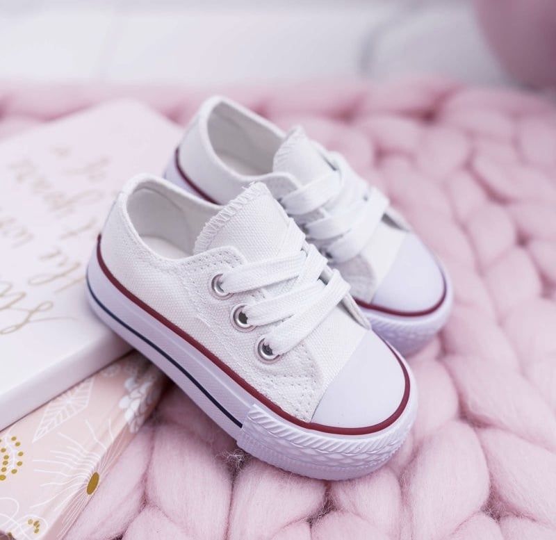 Maatadvies: De sneakers vallen groter uit. Hou de maattabel aan. Tijdloze witte sneakers met subtiele rode rand voor kids. Comfortabel, stevig en makkelijk te combineren met elke outfit. Perfect voor dagelijks gebruik. Verkrijgbaar in maat 18 t/m 35.