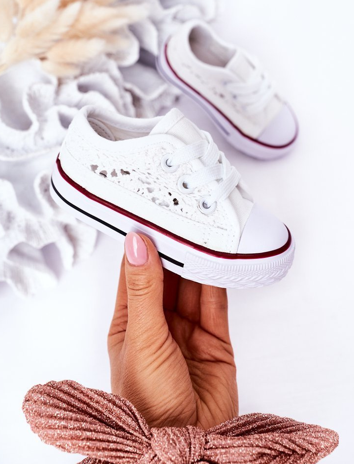 Maatadvies: De sneakers vallen groter uit. Hou de maattabel aan. Trendy witte sneakers met kantdetail voor kids. Comfortabel, lichtgewicht en perfect te combineren met elke outfit. Ideaal voor dagelijks gebruik. Verkrijgbaar in maat 18 t/m 35.