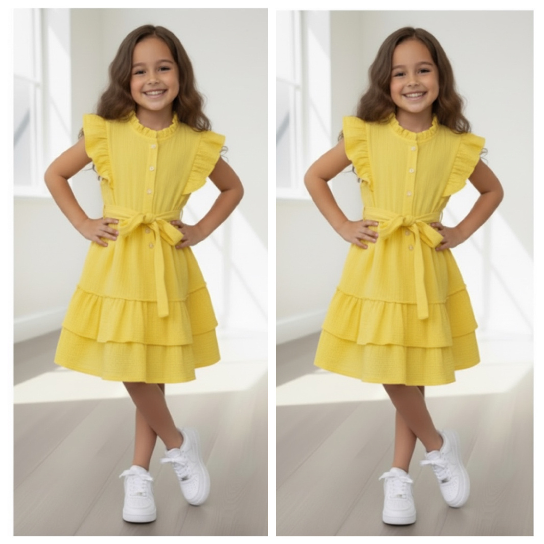 Mousseline Ruffle dress  - Geel