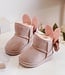 Deze roze UGG-style kinderboots zijn een echte blikvanger voor de winter! De laarsjes hebben gouden glitteroortjes en een grote satijnen strik aan de achterkant – perfect voor meisjes die van een vleugje glamour houden.