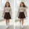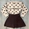 Trendy 2-delig meisjes setje met beige polkadot trui en donker bruin plissé rokje. Verkrijgbaar van maat 86/92 t/m 110/116.