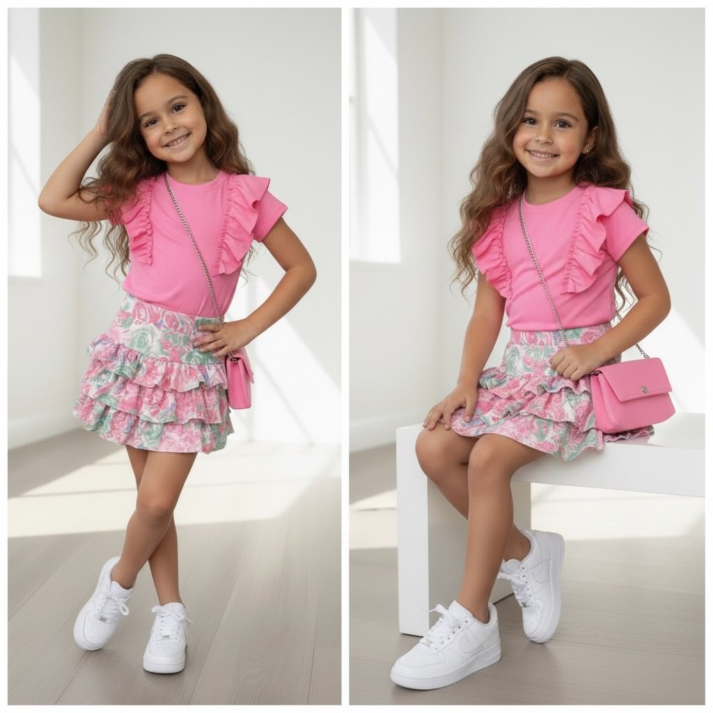 Rozen Rokje & T-Shirt met tasje - Roze