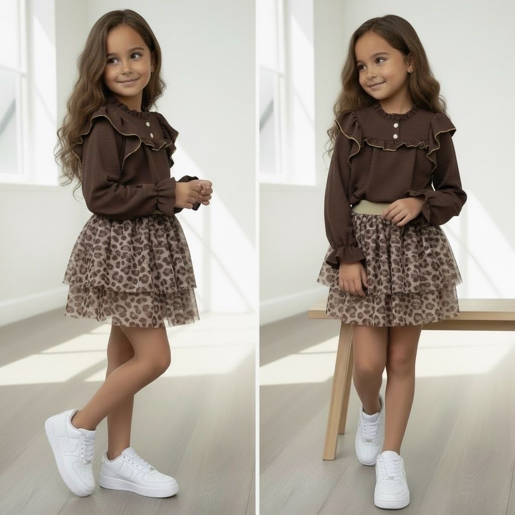 Trendy blouse in de kleur Marron voor meisjes. Elegant, comfortabel en perfect voor zowel dagelijks als feestelijk gebruik. Makkelijk te combineren met iedere outfit. Verkrijgbaar in maat 98/104 t/m 158/164.