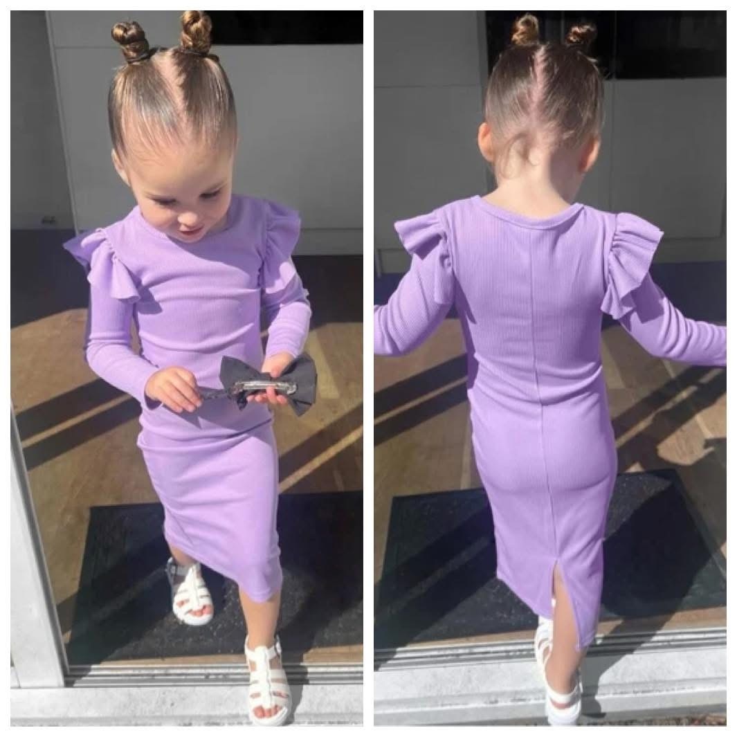 Hoe leuk is dit jurkje! Het is een lekker basic jurkje maar door de ruffle aan de mouwen maakt het de jurk helemaal leuk. De jurk heeft een ronde hals en lange mouwen. Aan de achterkant van de jurk zit een kleine split.