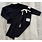 Zwart meisjes set bestaande uit een lange mouwen shirt en een flared broek met tekstlabel op het been. Comfortabel én trendy! Perfect voor meiden wdie houden van fashion. Verkrijgbaar van maat 98/104 t/m 158/164.