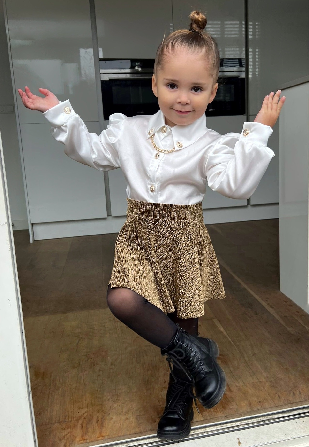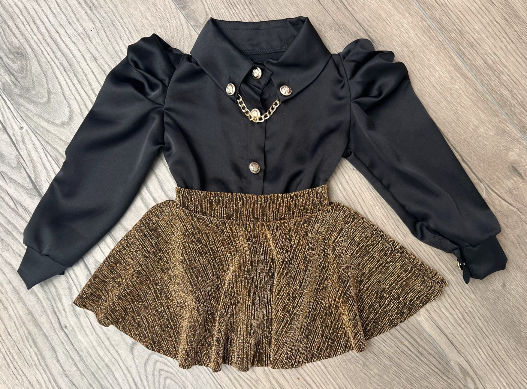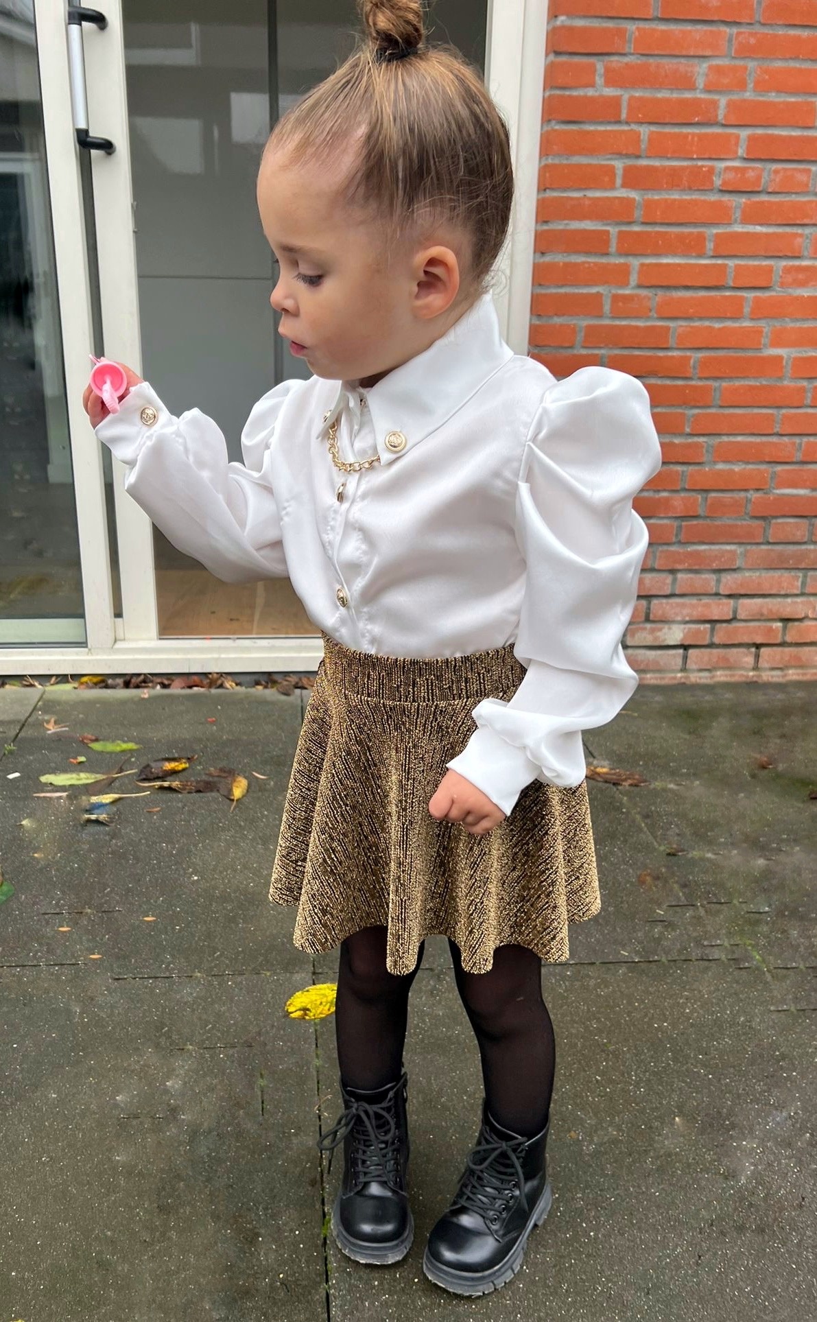 Shine deze feestdagen met dit gouden glitter rokje van Draakjes en Boefjes ✨. Het rokje is gemaakt van een comfortabele stofmix met lurex, waardoor het een prachtige metallic glans heeft.