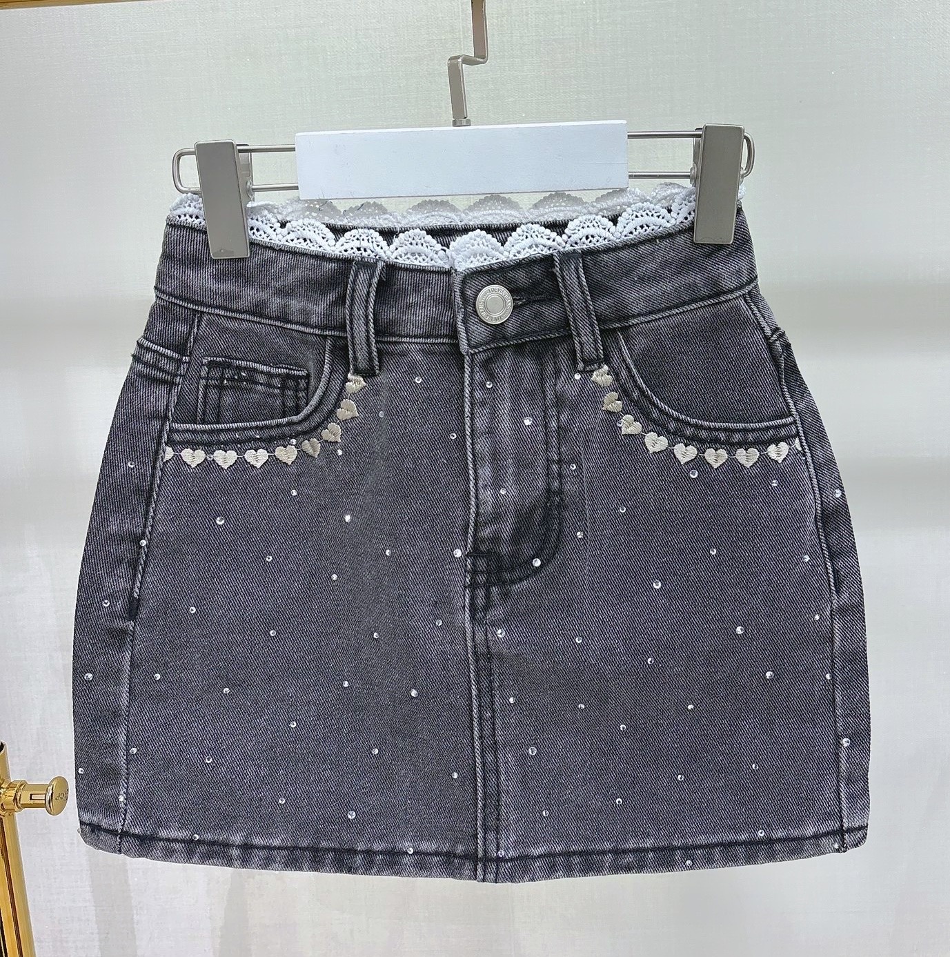 Spijkerrok met hartjes - Blauw