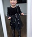 Dit prachtige zwarte velvet jurkje is een echte eyecatcher voor de feestdagen en bijzondere gelegenheden. De zachte velours stof geeft een luxe uitstraling, terwijl de subtiele glitters het jurkje feestelijk maken. Het bijpassende tasje met zilveren ketting maakt de look compleet. Ideaal voor kerst, verjaardagen of andere speciale momenten. Verkrijgbaar in maat 86/92 t/m 146/152.