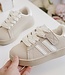 Met klittenband! Deze beige sneakers met witte streepjes zijn dé perfecte basic voor elke outfit. Ze ogen sportief, zijn superlicht en zitten heerlijk! Verkrijgbaar in de maten 21 t/m 36!