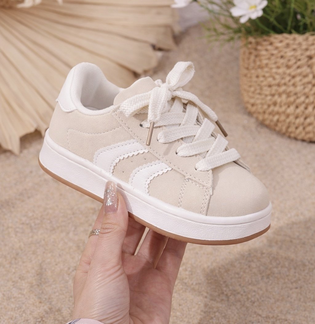 De sneakers hebben een comfortabele pasvorm met zachte binnenvoering en een stevige zool. Hierdoor zijn ze ideaal voor zowel de eerste stapjes als voor actieve kinderen die graag buiten spelen. De witte strepen aan de zijkant geven de schoenen een sportieve uitstraling, terwijl het tijdloze design moeiteloos combineert met iedere outfit.