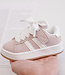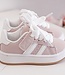 Met klittenband! Deze lichtroze sneakers met witte streepjes zijn een musthave voor elke girly outfit. Zacht, sportief én super comfortabel. Verkrijgbaar in de maten 21 t/m 36!