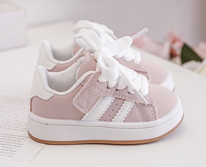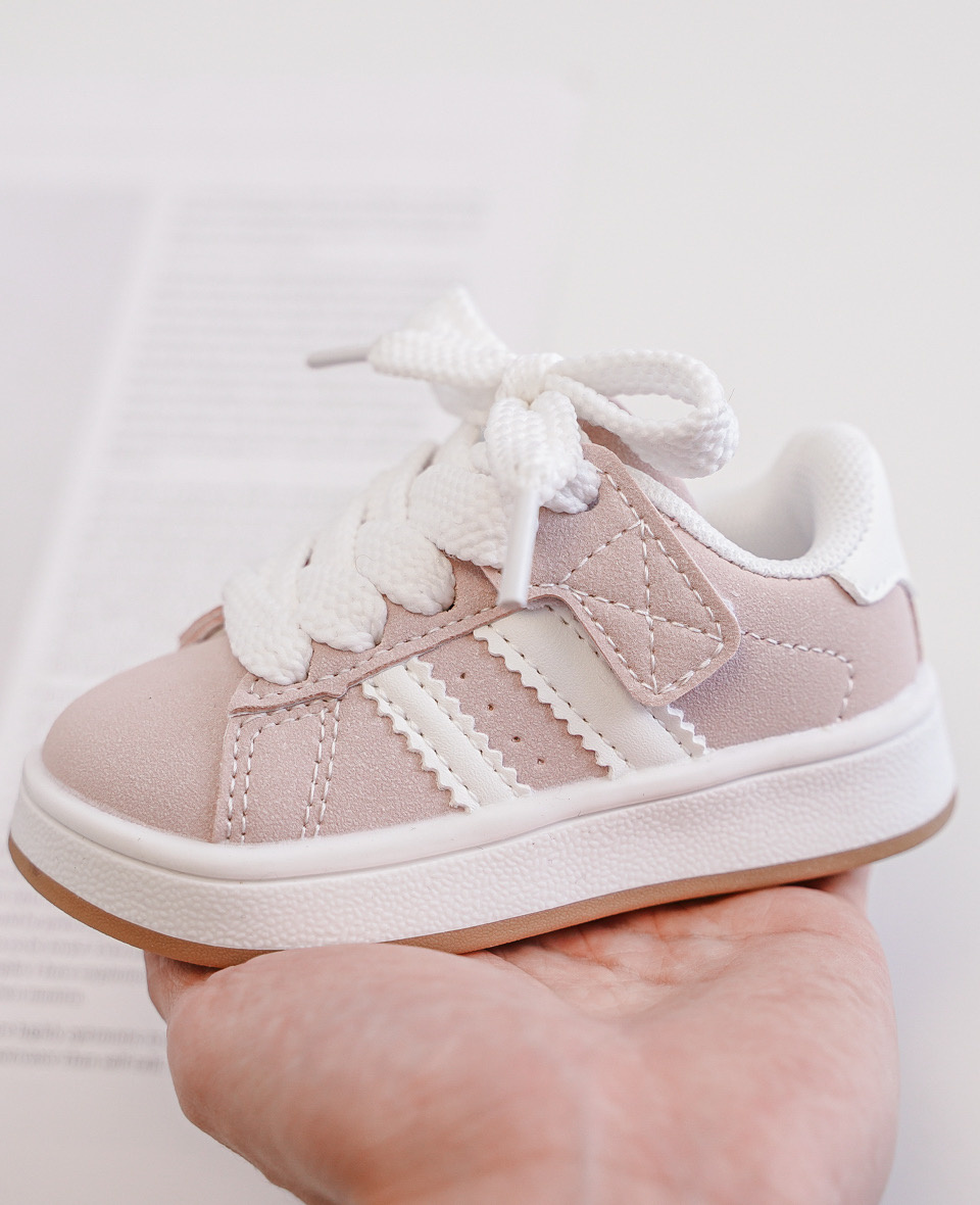 Deze lichtroze look-a-like adidas sneakers zijn gemaakt voor kleine meisjes die houden van zacht én stoer tegelijk. De witte streepdetails, stevige zool en comfortabele voering maken deze schoentjes ideaal voor de eerste stapjes of actieve speelmomenten.