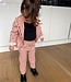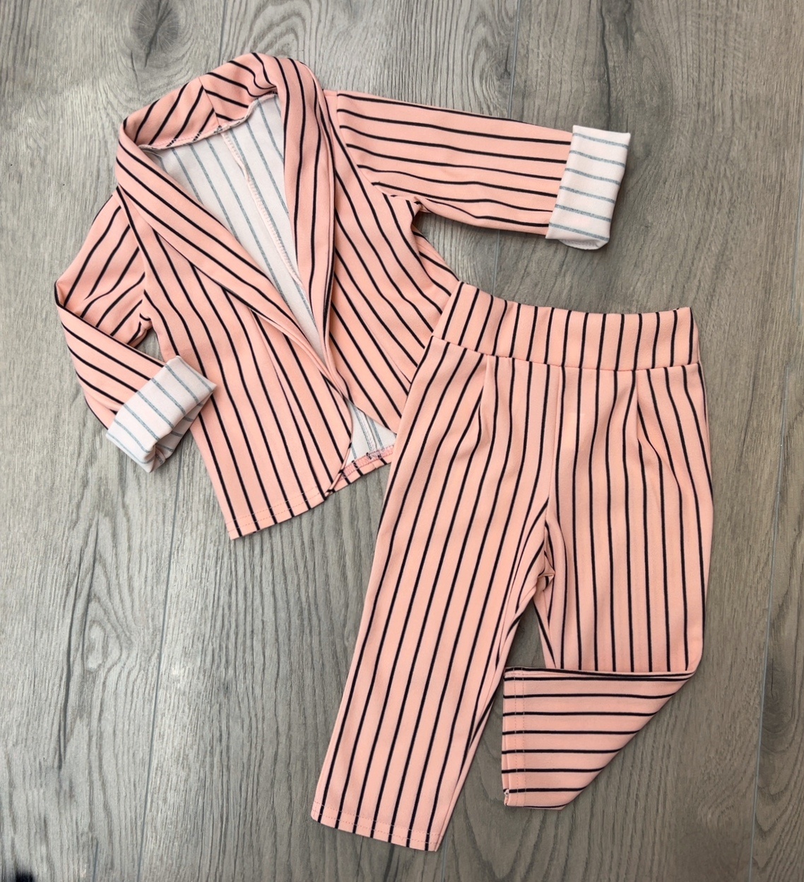 Deze Suit Up set is voor de meiden die graag in stijl voor de dag komen! Het setje bestaat uit een trendy blazerjasje en een bijpassend broekje met elastische tailleband, beide in een opvallende roze/zwart gestreepte print.