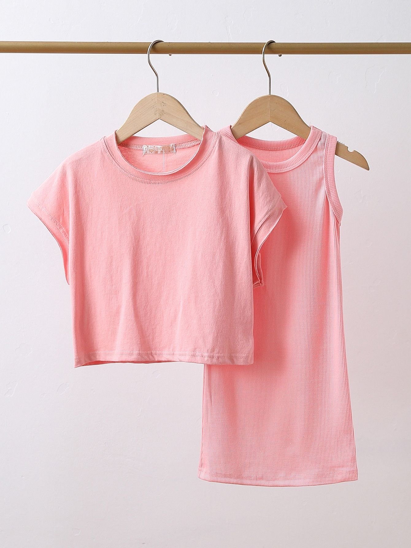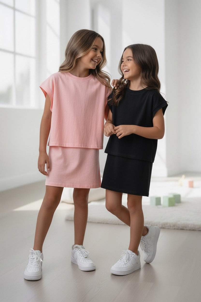 Op zoek naar een trendy meisjes outfit? Deze roze 2-delige jurk set is een echte musthave! De set bestaat uit een aansluitend rib jurkje en een losvallend oversized shirtje dat er speels overheen gedragen wordt. Dankzij de zachte stof zit deze outfit heerlijk comfortabel en ziet jouw meisje er tegelijk super stijlvol uit.