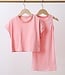 Super schattige meisjes set in zachtroze kleur. Deze 2-delige outfit bestaat uit een comfortabel rib jurkje met een trendy oversized shirtje eroverheen. Perfect voor school, spelen of een dagje uit.