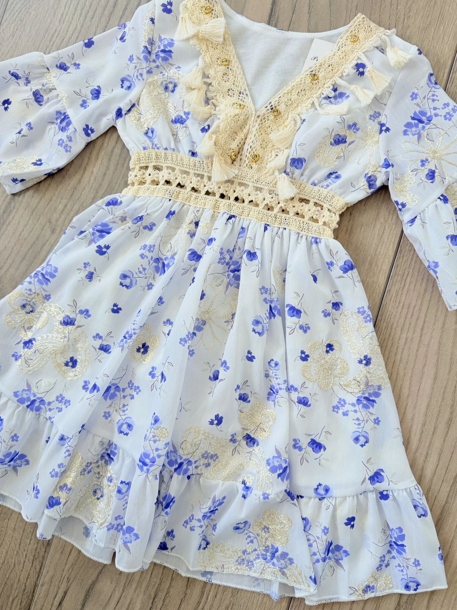 Summer Roses Dress - Wit/Blauw