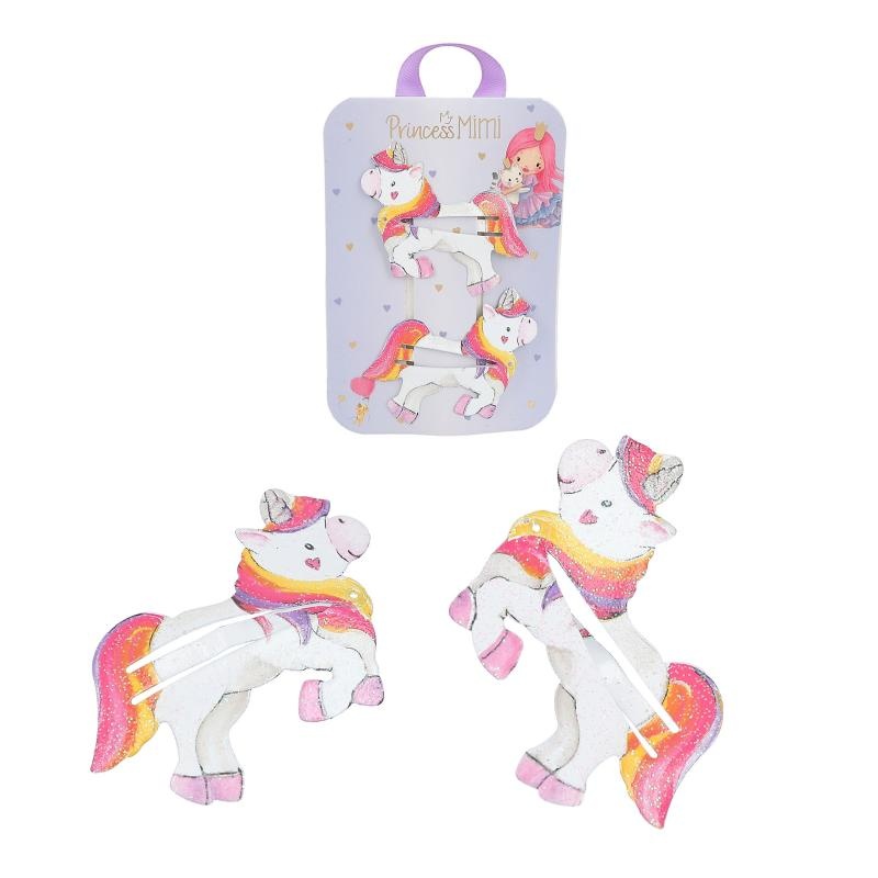 Voor hartelijk-schattige kapsels: de haarspeldjes van Princess Mimi zijn een blikvanger vol glitter in het haar van kleine prinsesjes. Het ene ontwerp is nog schattiger dan het andere: Princess Mimi, eenhoorn Bonny Pony, een vrolijke regenboog en een kleine vos. 2 haarspeldjes per motief op een mooi vormgegeven kaartje.
