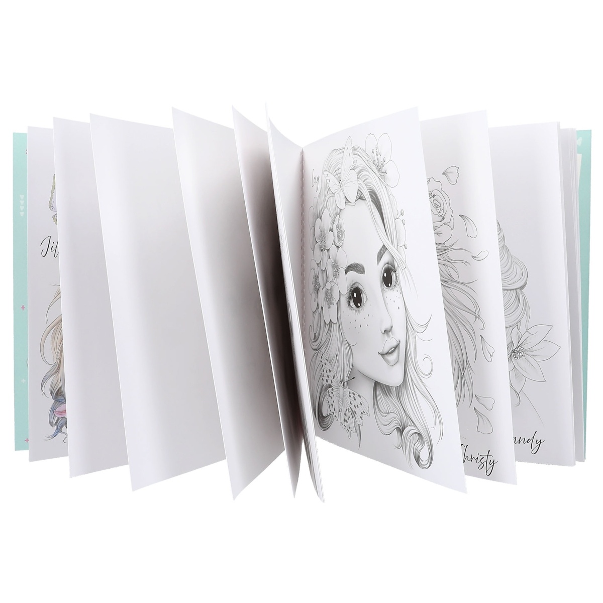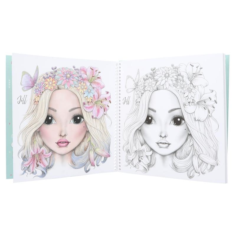 Een special kleurboek van TOPModel: 20 betoverende, bloemrijke kleurplaten van modellen om in te kleuren.