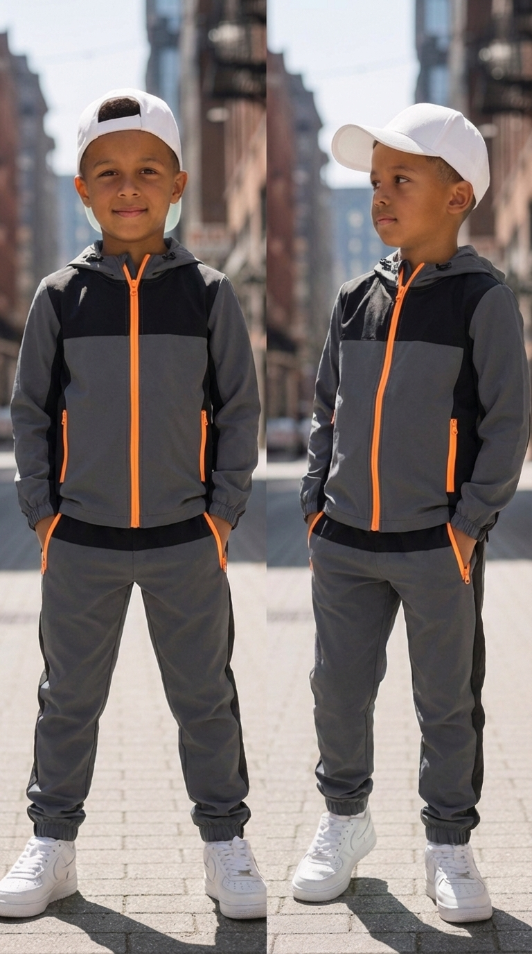Dit stoere trainingspak is perfect voor jongens die houden van comfort en een trendy streetstyle look. De set bestaat uit een hoodie met ritssluiting en een bijpassende joggingbroek, ideaal voor elke dag.
