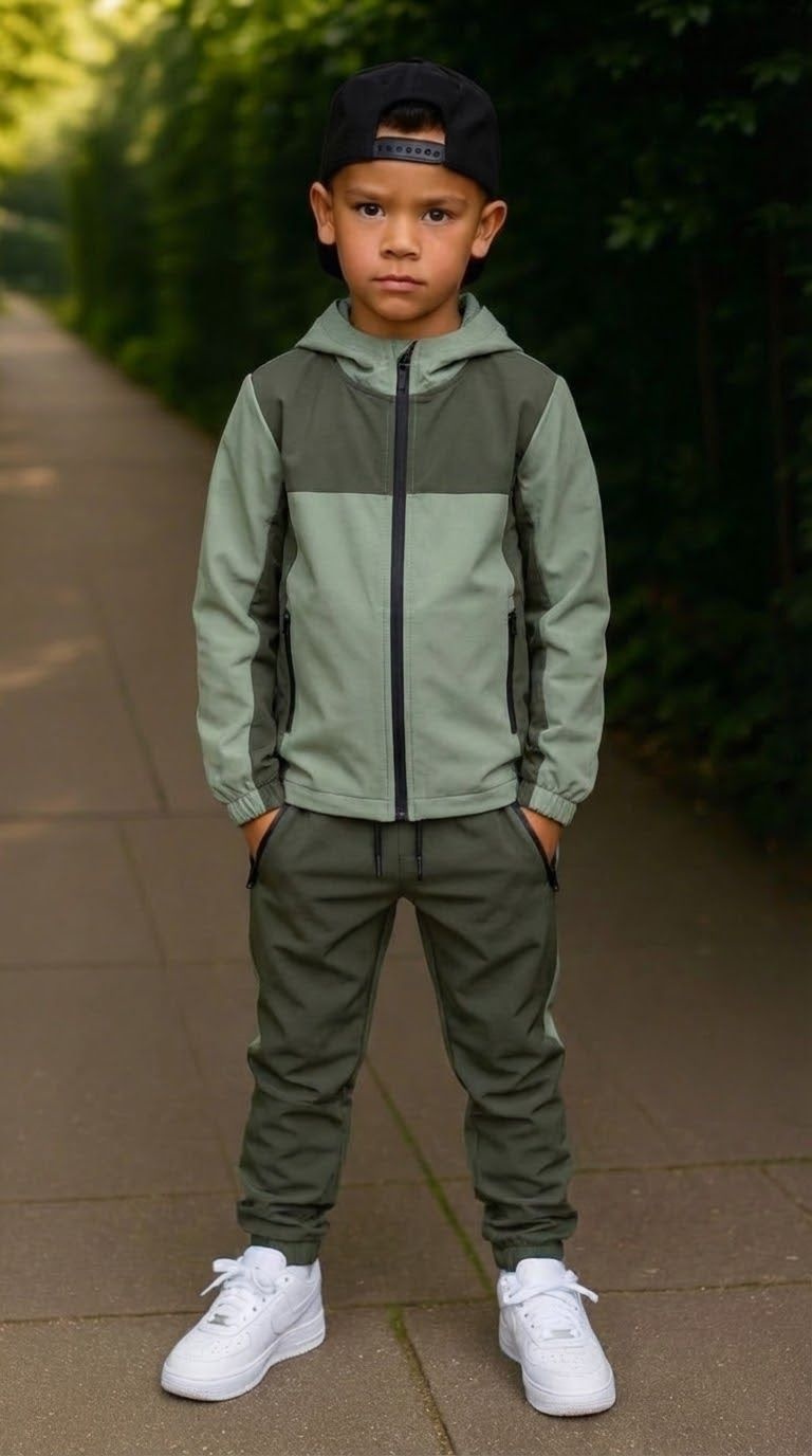 Stoer trainingspak voor jongens met vest en bijpassende broek. Comfortabel, trendy en perfect voor dagelijks gebruik. Ideaal voor school en buitenspelen. Verkrijgbaar in maat 104/110 t/m 158/164.