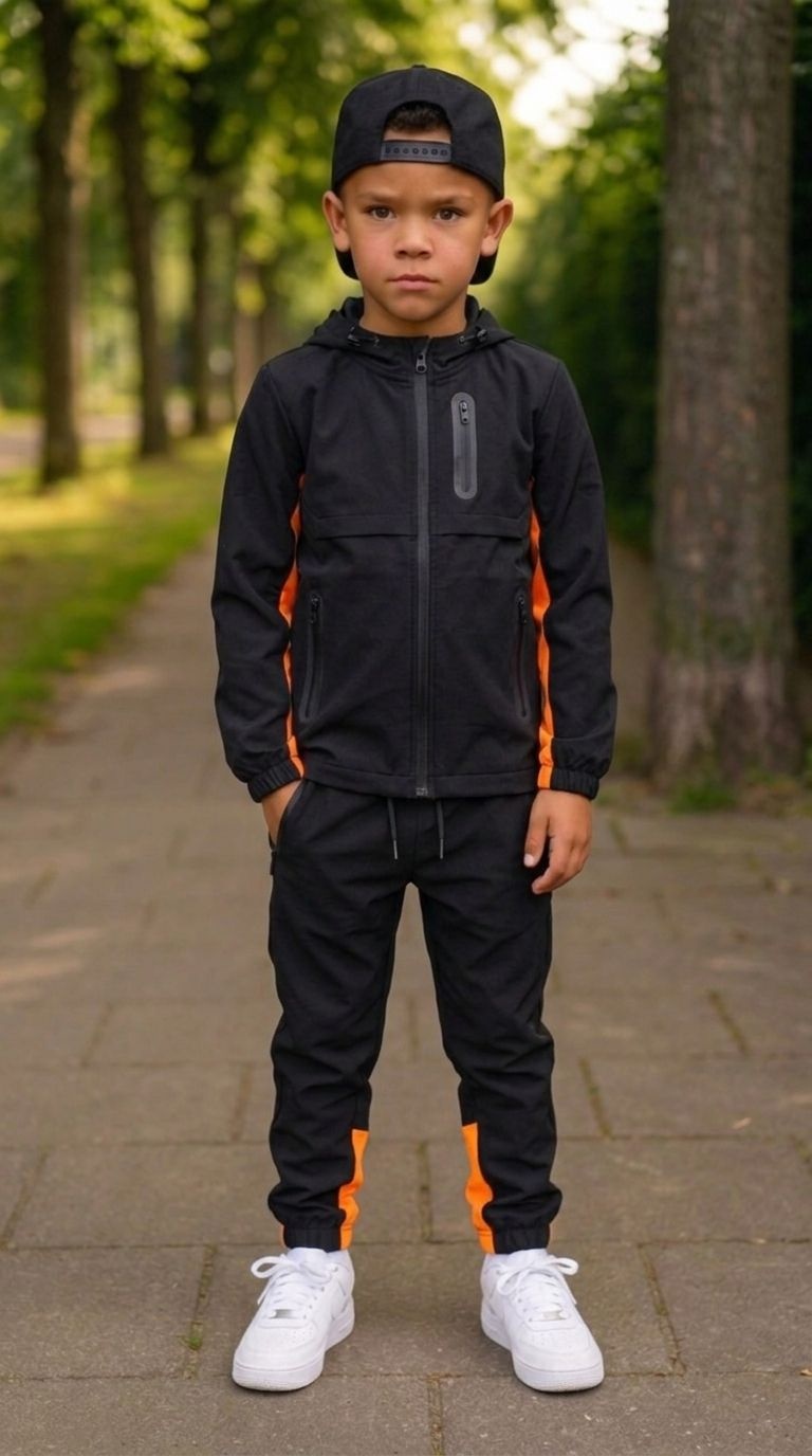 Dit stoere trainingspak is perfect voor jongens die houden van comfort en een trendy streetstyle look. De set bestaat uit een vest met ritssluiting en een bijpassende joggingbroek, ideaal voor elke dag.