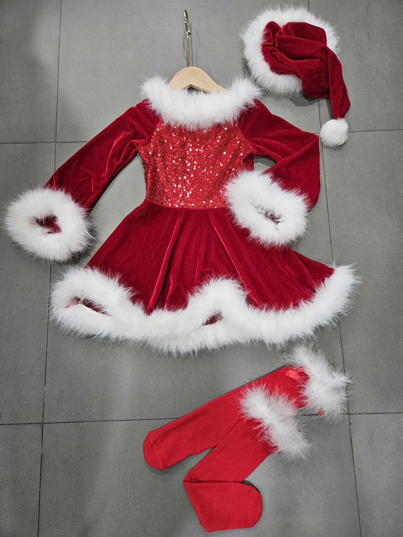 Laat jouw meisje stralen in dit prachtige rode jurkje met bijpassende kerstmuts.