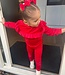 Dit rode velvet meisjes setje is een perfecte combinatie van stijl en comfort. Het setje bestaat uit een zachte velvet sweater met speels ruffle detail over de borst en een bijpassende legging.