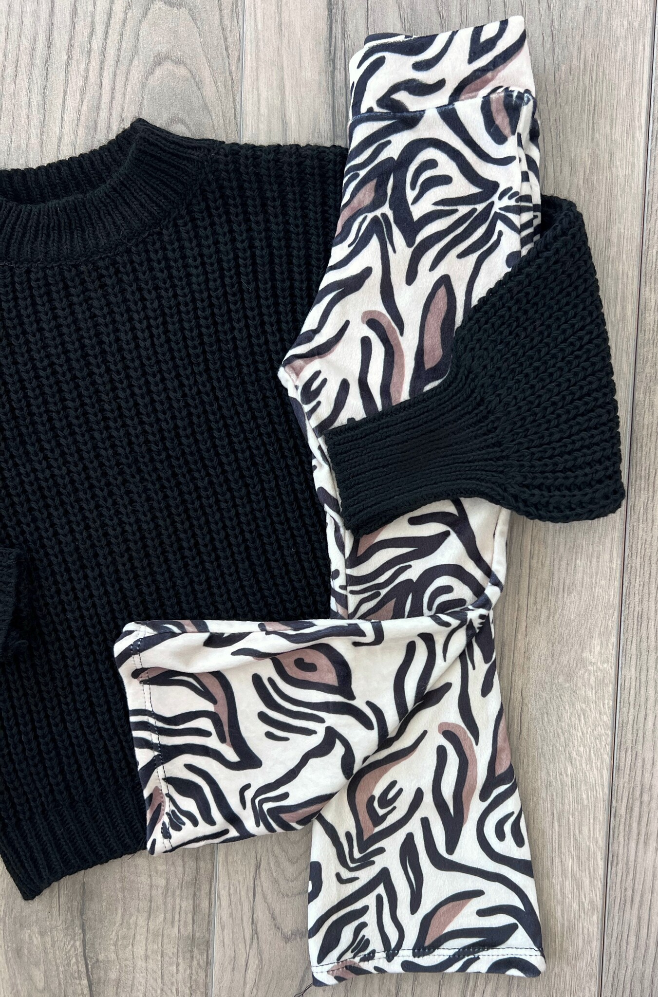 Super zacht flared broekje met zebraprint voor meisjes! Super leuk te combineren met één van onze shirtjes of sweaters!