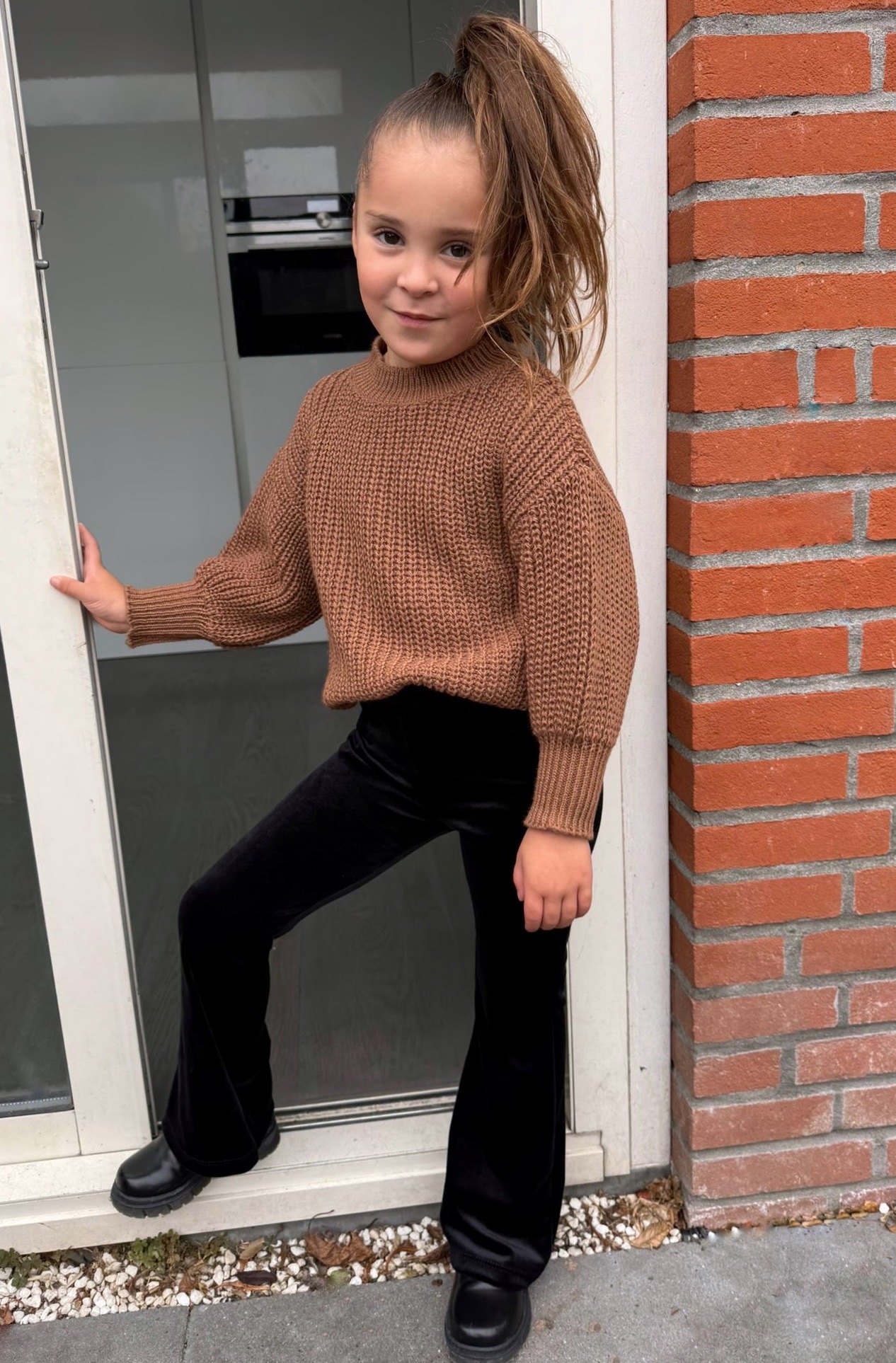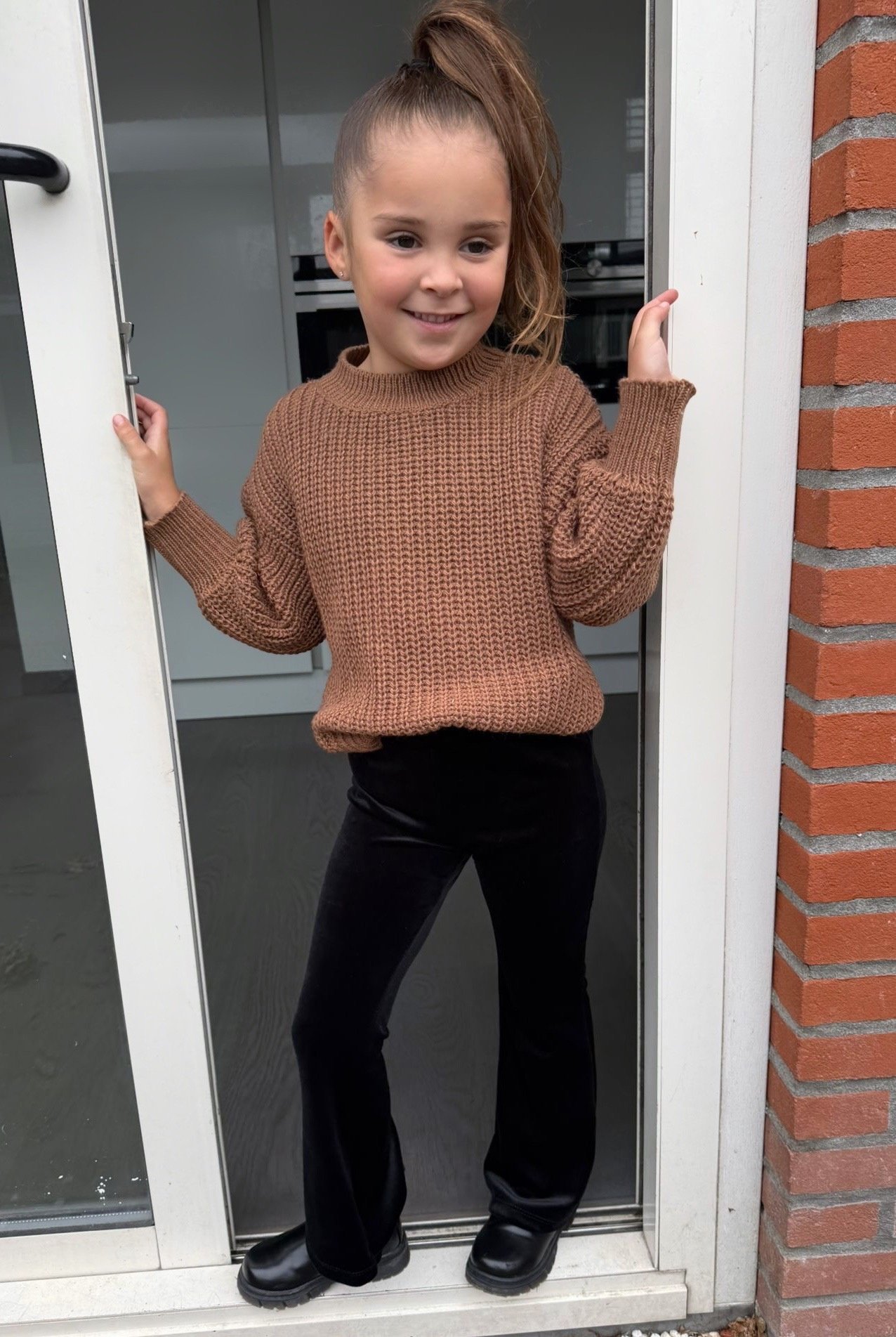 Stijlvolle velvet flared broek voor meisjes in zwart. Tijdloos, comfortabel en makkelijk te combineren met elke outfit. Maat 86/92 t/m 134/140.