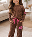 Camel meisjes set bestaande uit een lange mouwen shirt en een flared broek met tekstlabel op het been. Comfortabel én trendy! Perfect voor meiden wdie houden van fashion. Verkrijgbaar van maat 98/104 t/m 158/164.