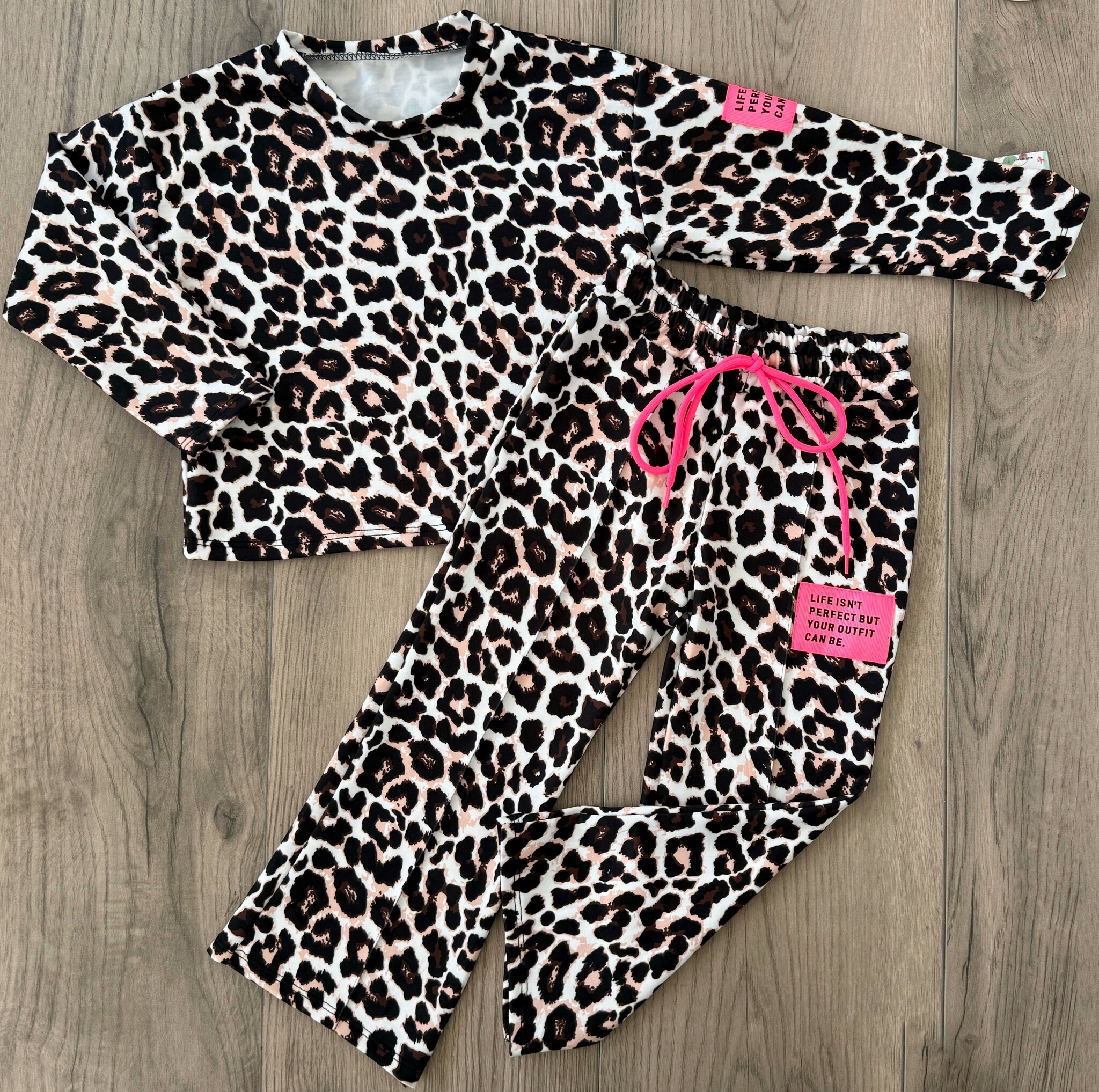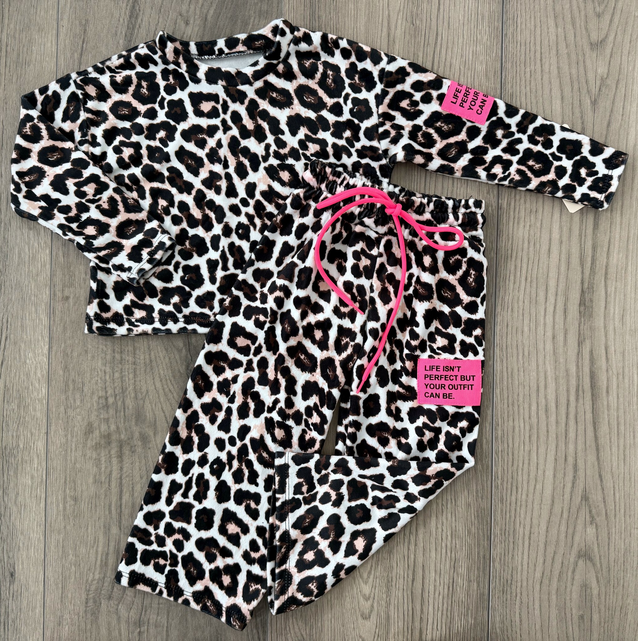 Dit stoere 2-delige luipaard setje is een echte musthave voor meisjes die van hippe outfits houden. Het setje bestaat uit een longsleeve trui en een flared broek met luipaardprint en felroze accenten. Dankzij de elastische taille en zachte stof zit het comfortabel én stijlvol. Perfect voor school, een dagje uit of gewoon lekker thuis. Verkrijgbaar in maat 98/104 t/m 146/152. Combineer dit setje met sneakers of laarsjes en maak de outfit helemaal compleet.