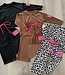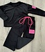 Zwart meisjes set bestaande uit een lange mouwen shirt en een flared broek met tekstlabel op het been. Comfortabel én trendy! Perfect voor meiden wdie houden van fashion. Verkrijgbaar van maat 98/104 t/m 158/164.