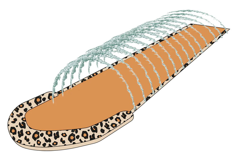 De waterglijbaan is geschikt vanaf 3 jaar en heeft oneindig veel watersproeiertjes, zodat de baan nat blijft.