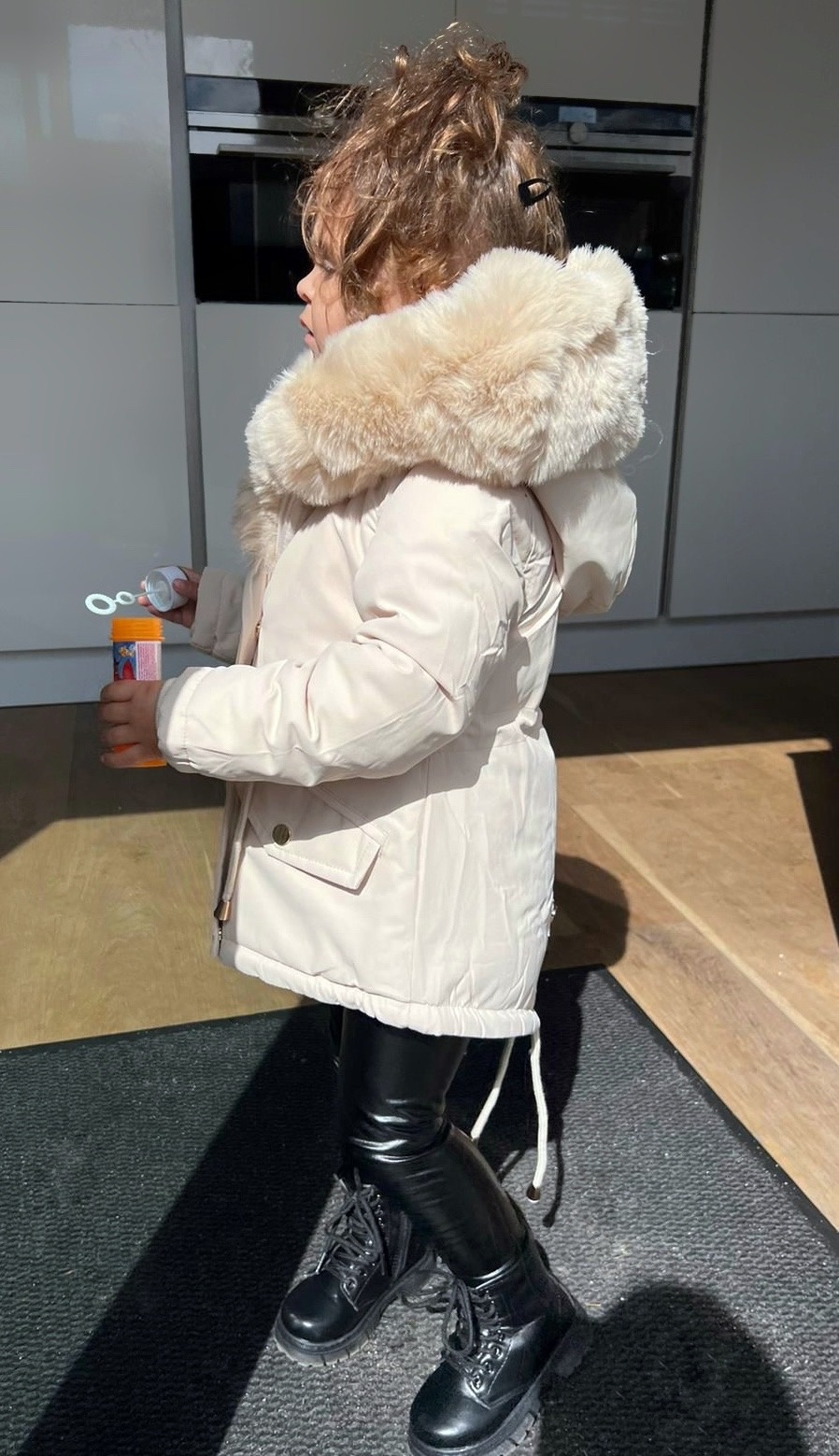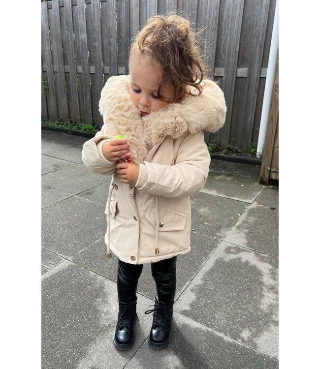 Stijlvolle meisjes parka in beige met grote fluffy kraag. Warm, gevoerd en perfect voor koude dagen. Een echte winter musthave!
