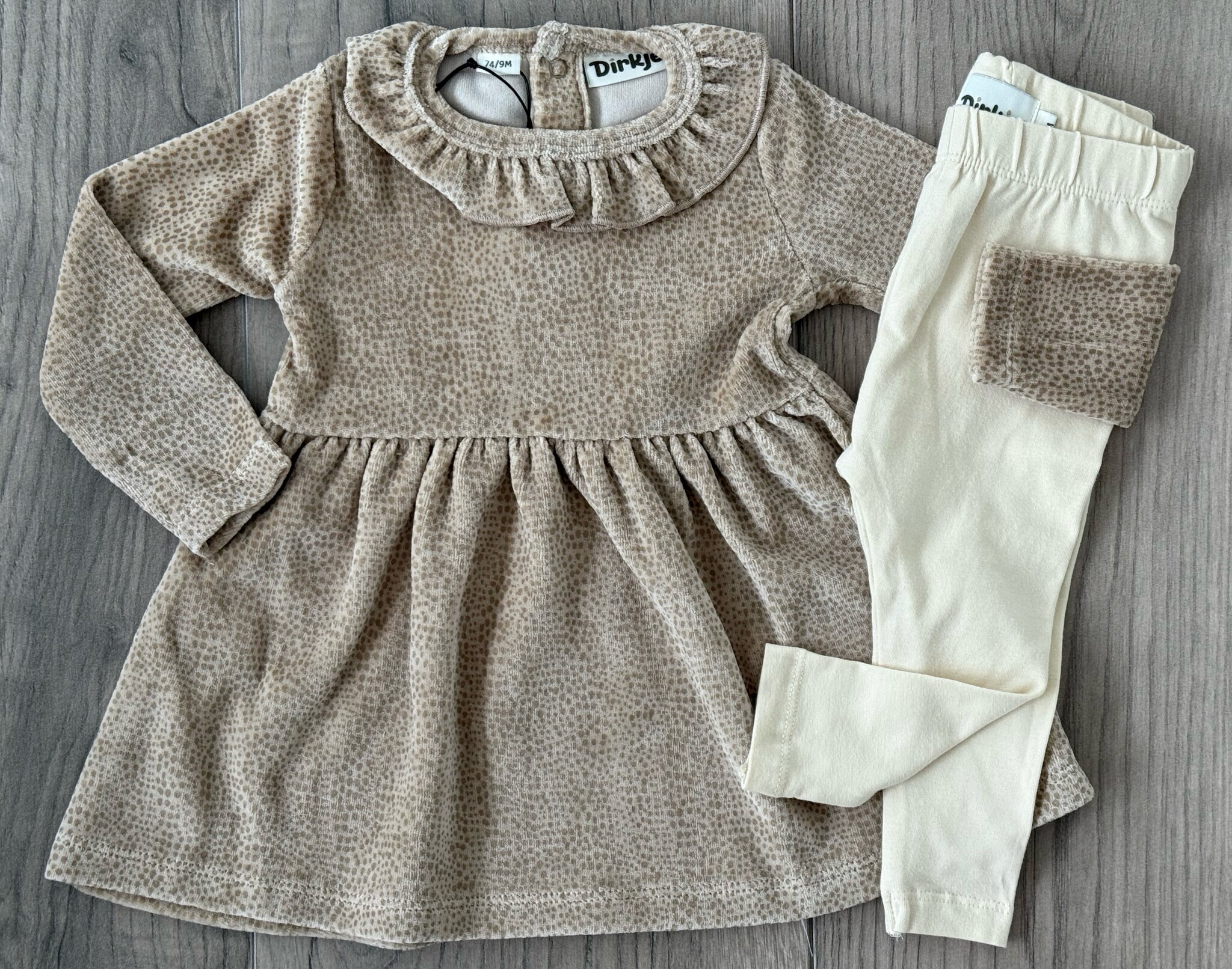 Lief 2-delig babysetje van Dirkje met jurkje en bijpassende legging in beige tint. Zacht en comfortabel. Maat 56 t/m 86.