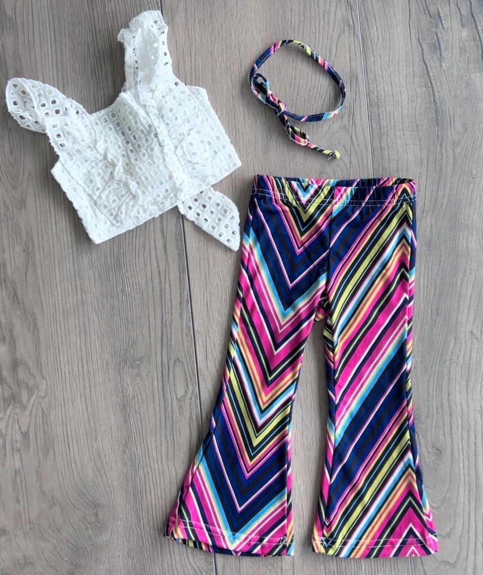 Een prachtige top met een bijpassend flared broekje in de maten 86/92 t/m 158/164